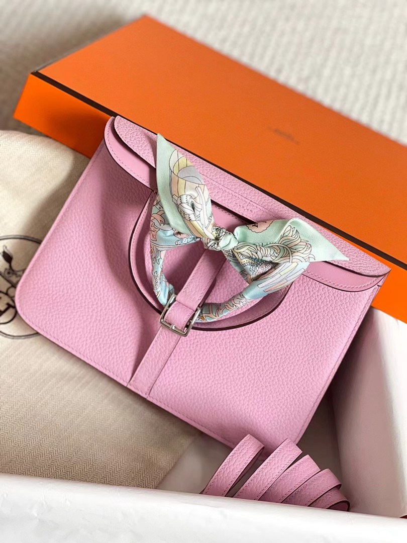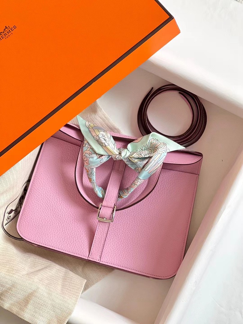 Hermes Taurillon Clemence Verso Halzan 25 Rose Sakura