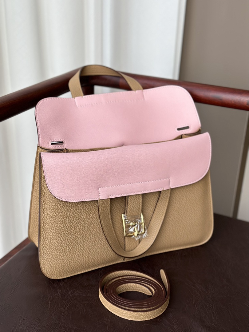Hermes Taurillon Clemence Verso Halzan 31 Chevre Gold