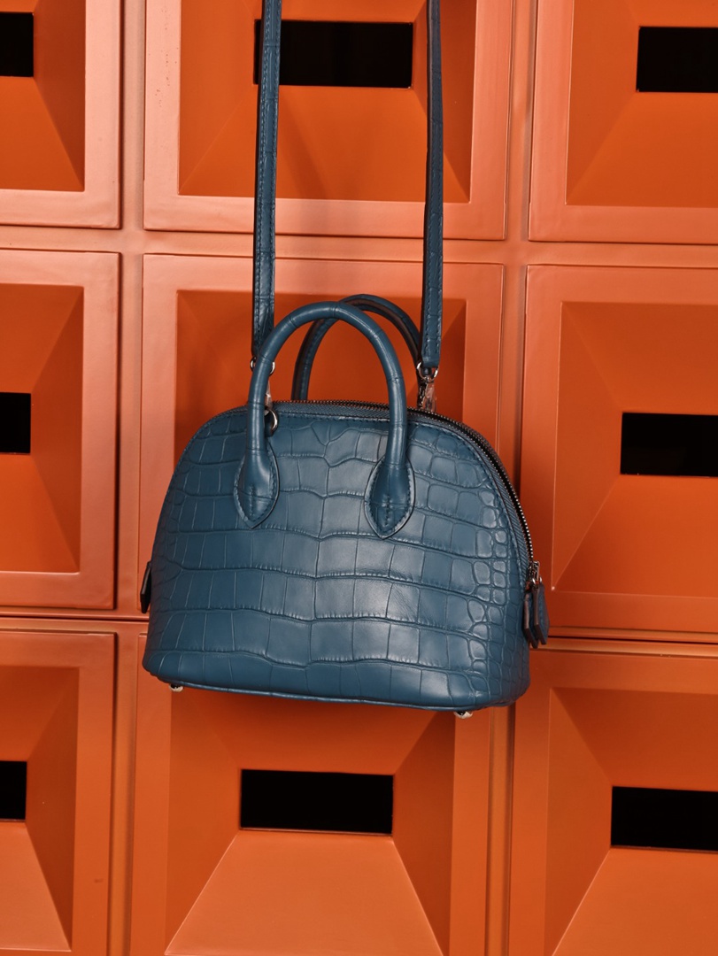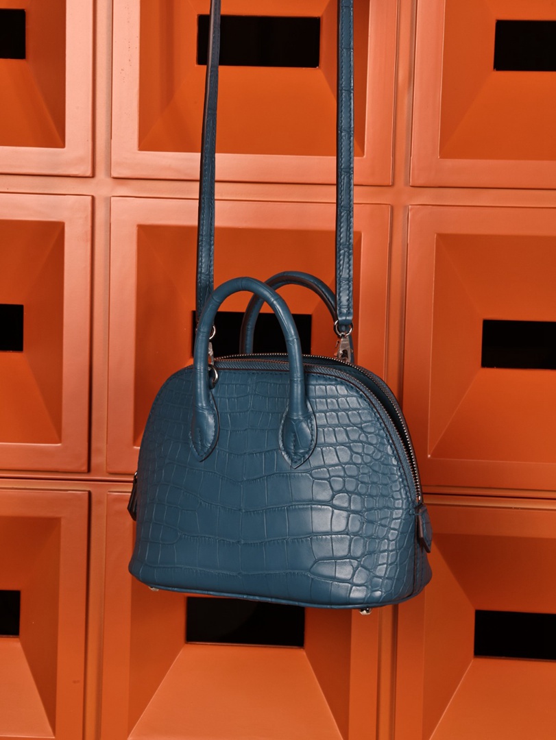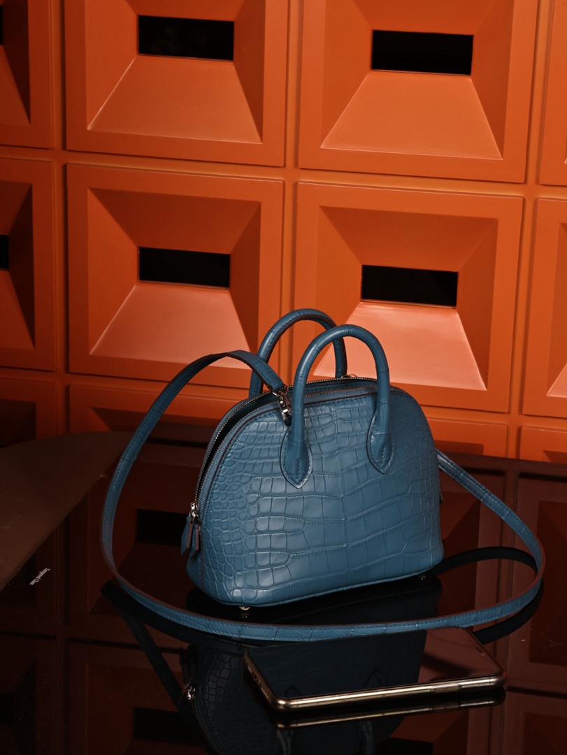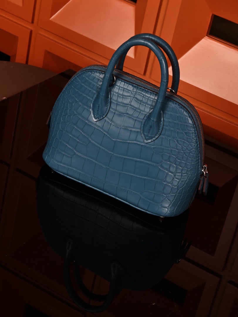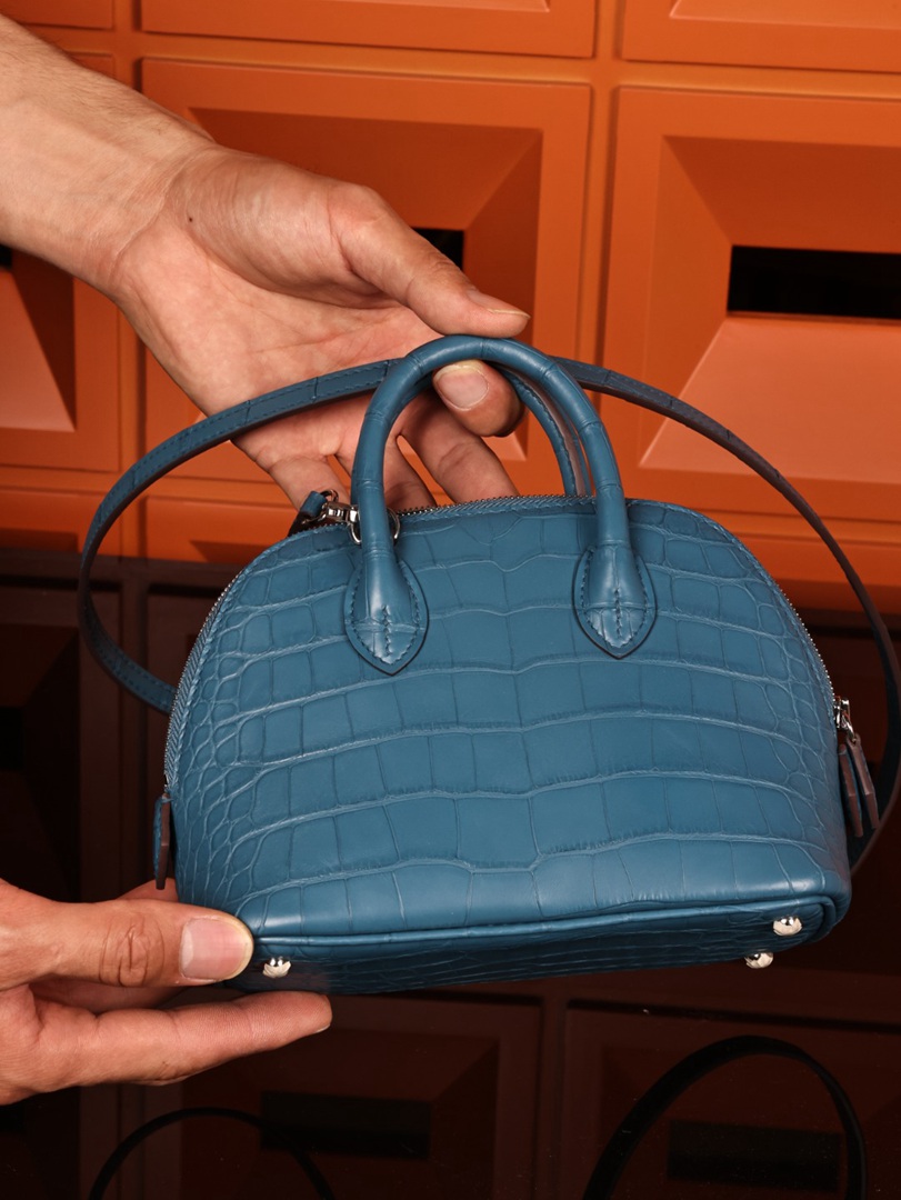 Hermes Mini Bolide 1923 Matte Alligator Bleu Jean Bag