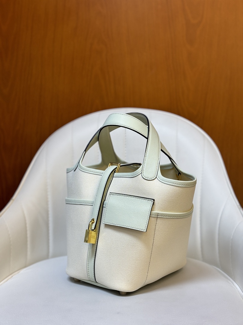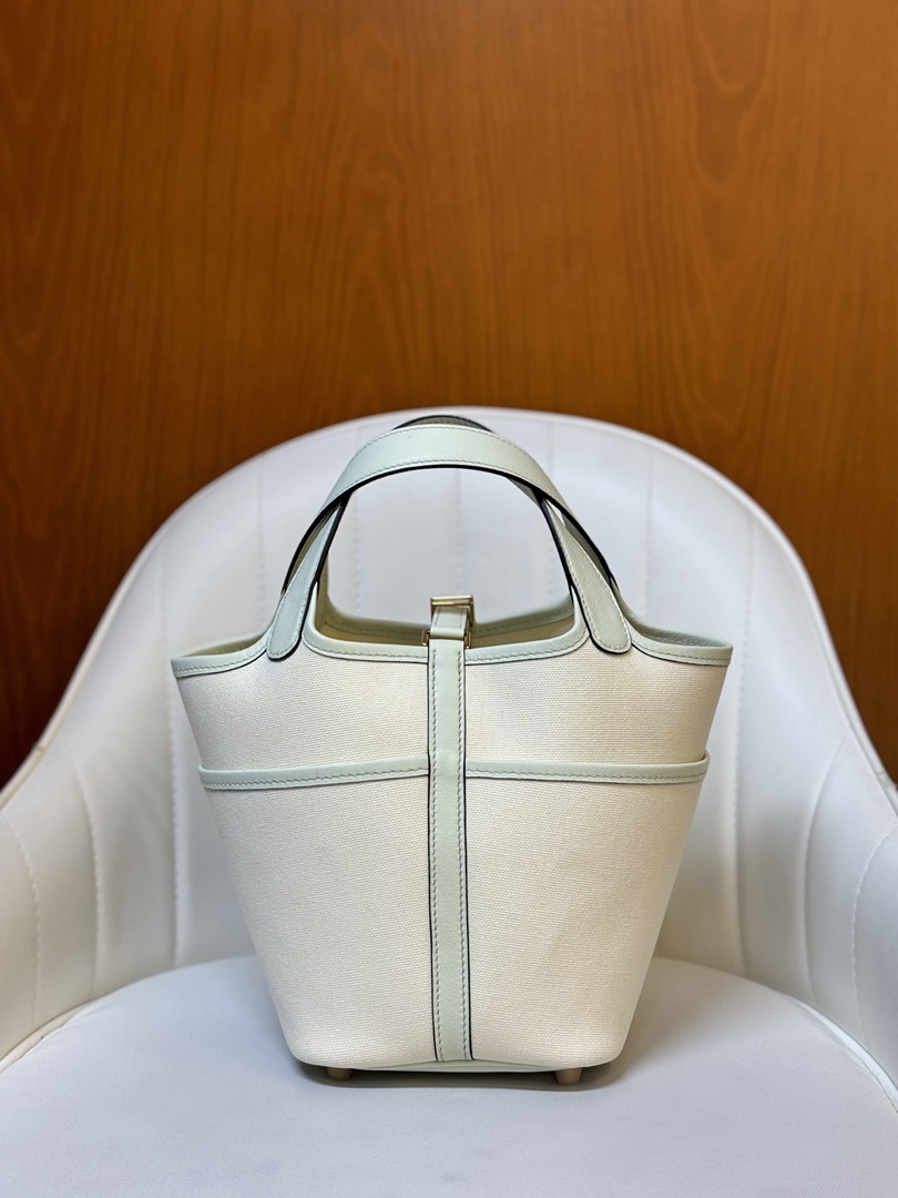 Hermes Cargo Picotin Toile Goeland Swift Picotin Lock 18 Craie and Vert Fizz