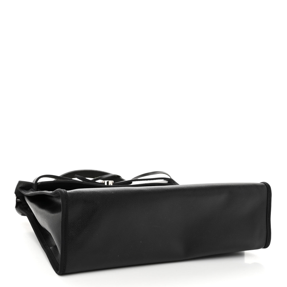 This stylish tote is crafted of sturdy toile coated canvas in black. The shoulder bag features a rear exterior toile canvas zip pocket, a black leather top crest with a leather top handle, a shoulder strap and strap closure with polished palladium silver hardware with a padlock. This opens to a toile canvas interior with a matching removable pochette. This is a stunning tote for everyday use, from Hermes!