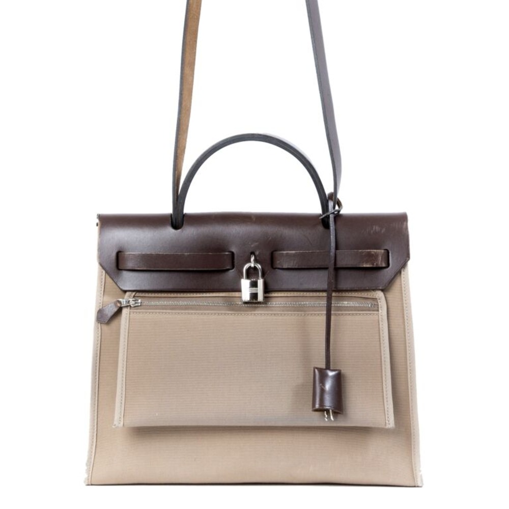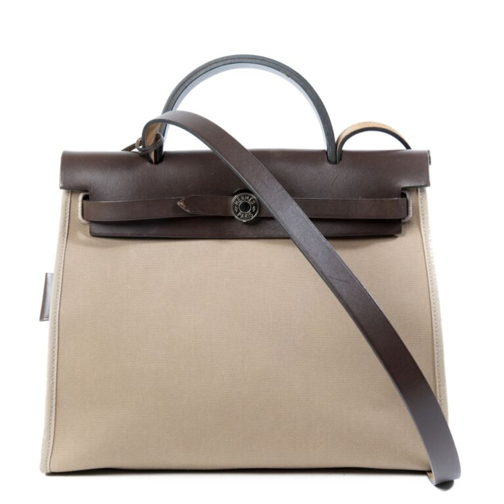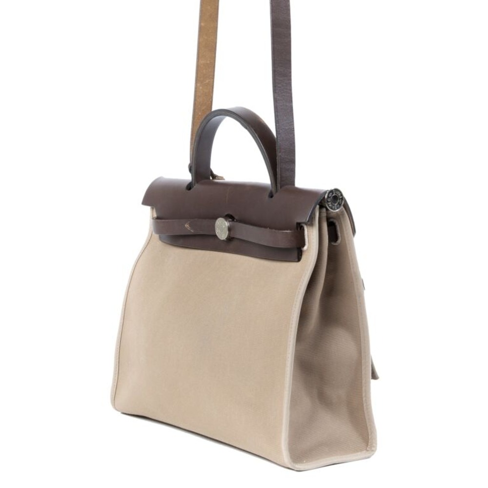 Hermes Toile H Berline Vache Hunter Herbag Zip PM Etoupe Beige