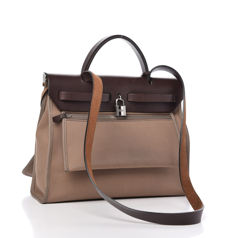 Hermes Toile H Berline Vache Hunter Herbag Zip PM Etoupe Ebene