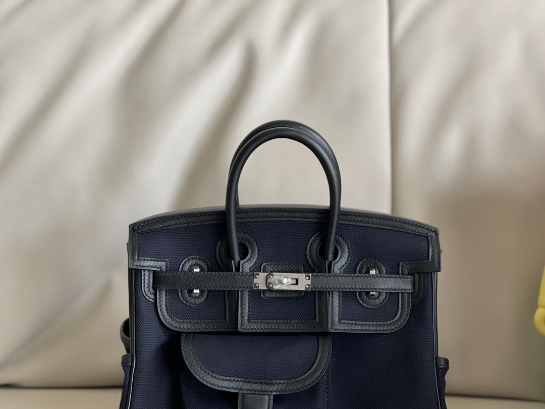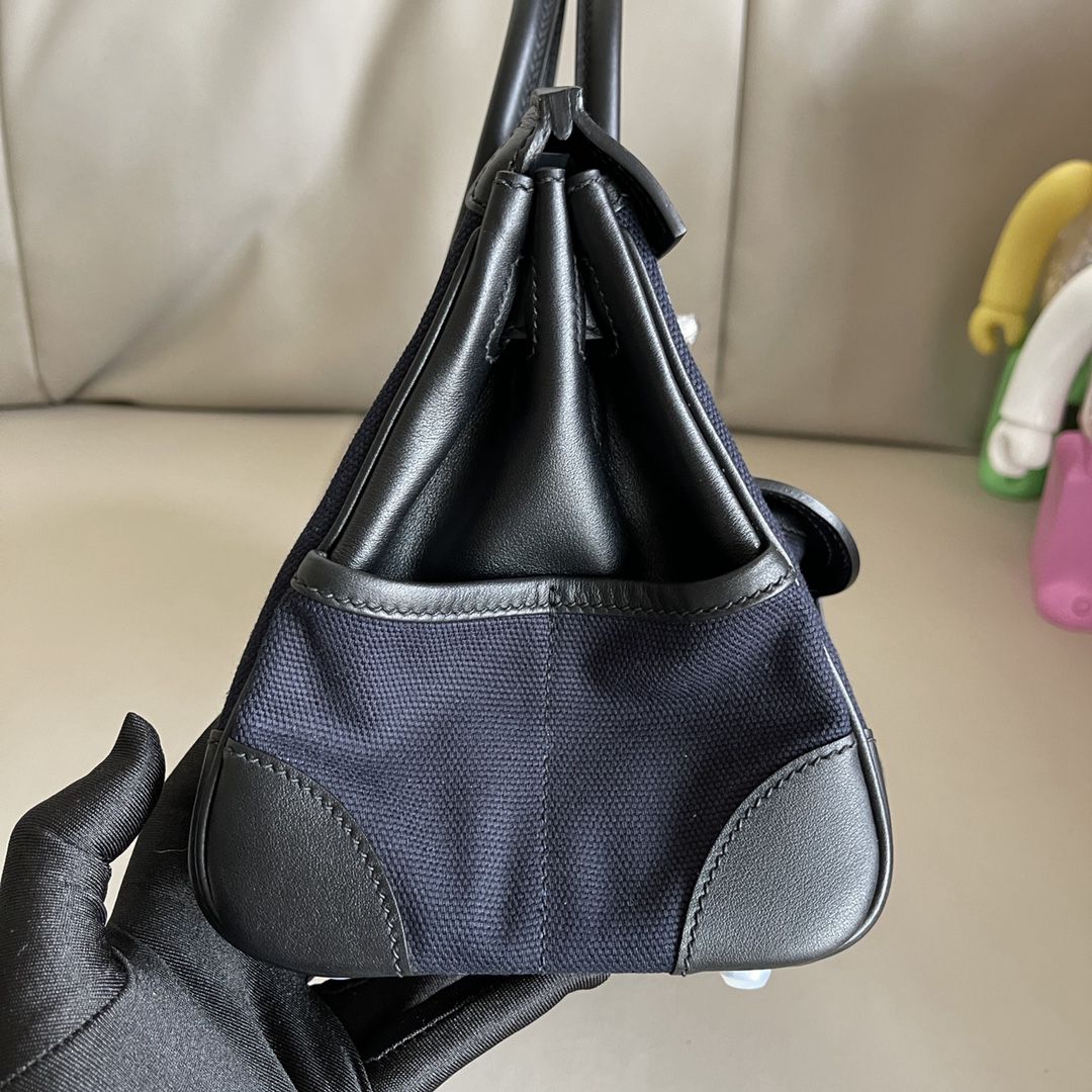 Hermes Birkin Cargo HAC 25 Blue Saphir Canvas & Black Box Calf Palladium Hardware