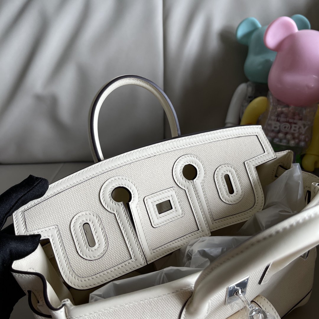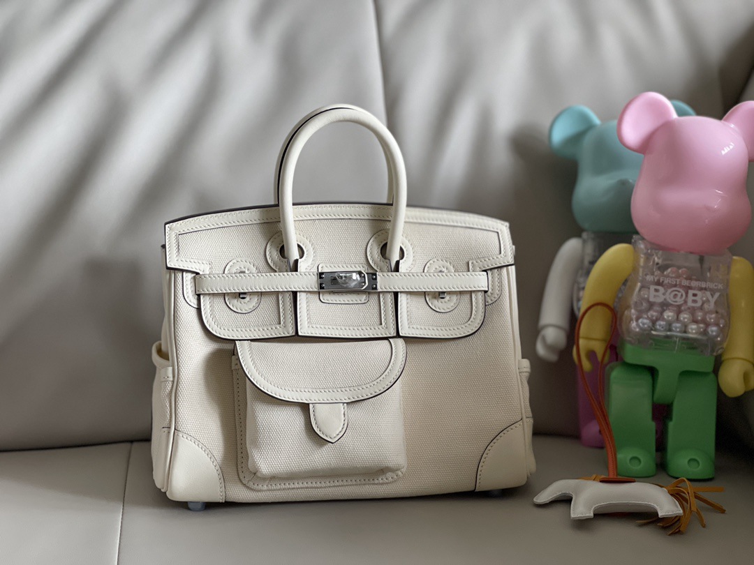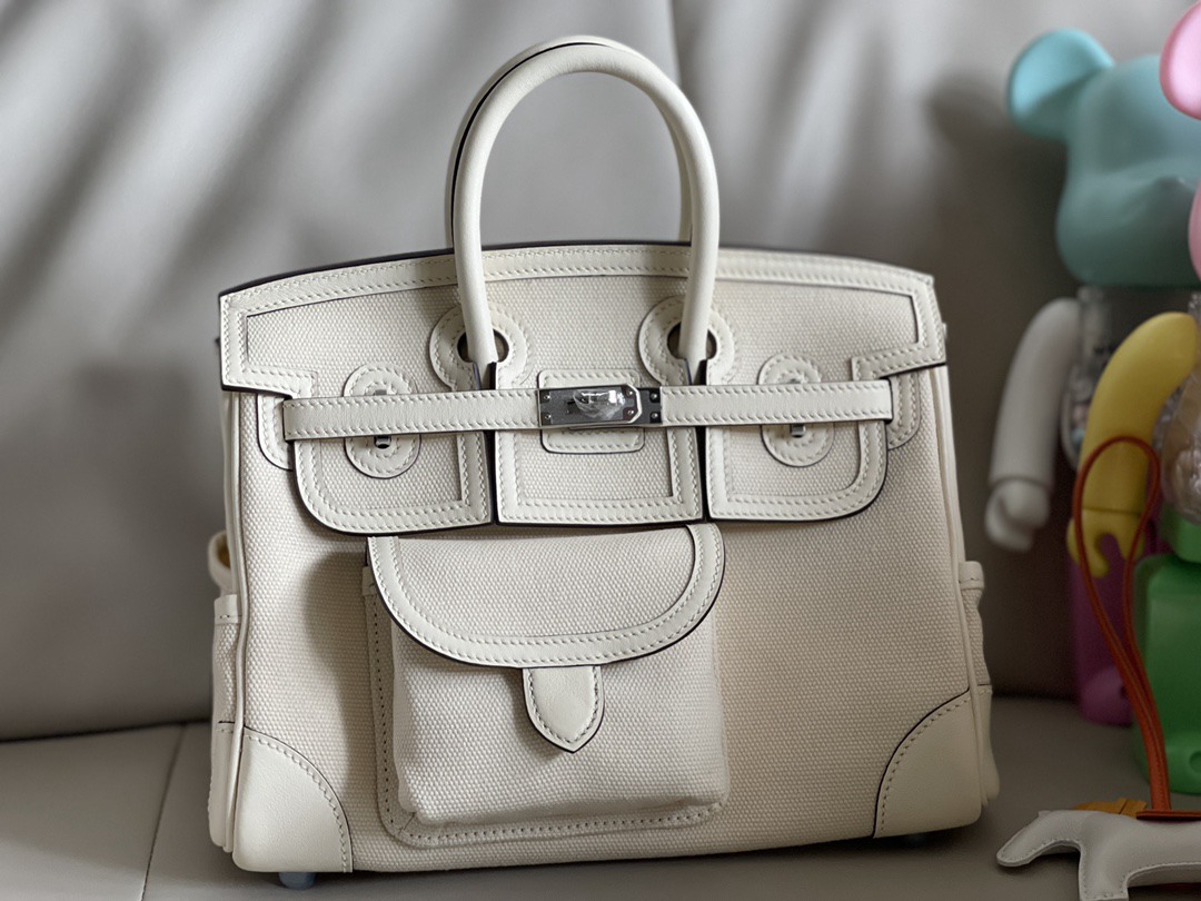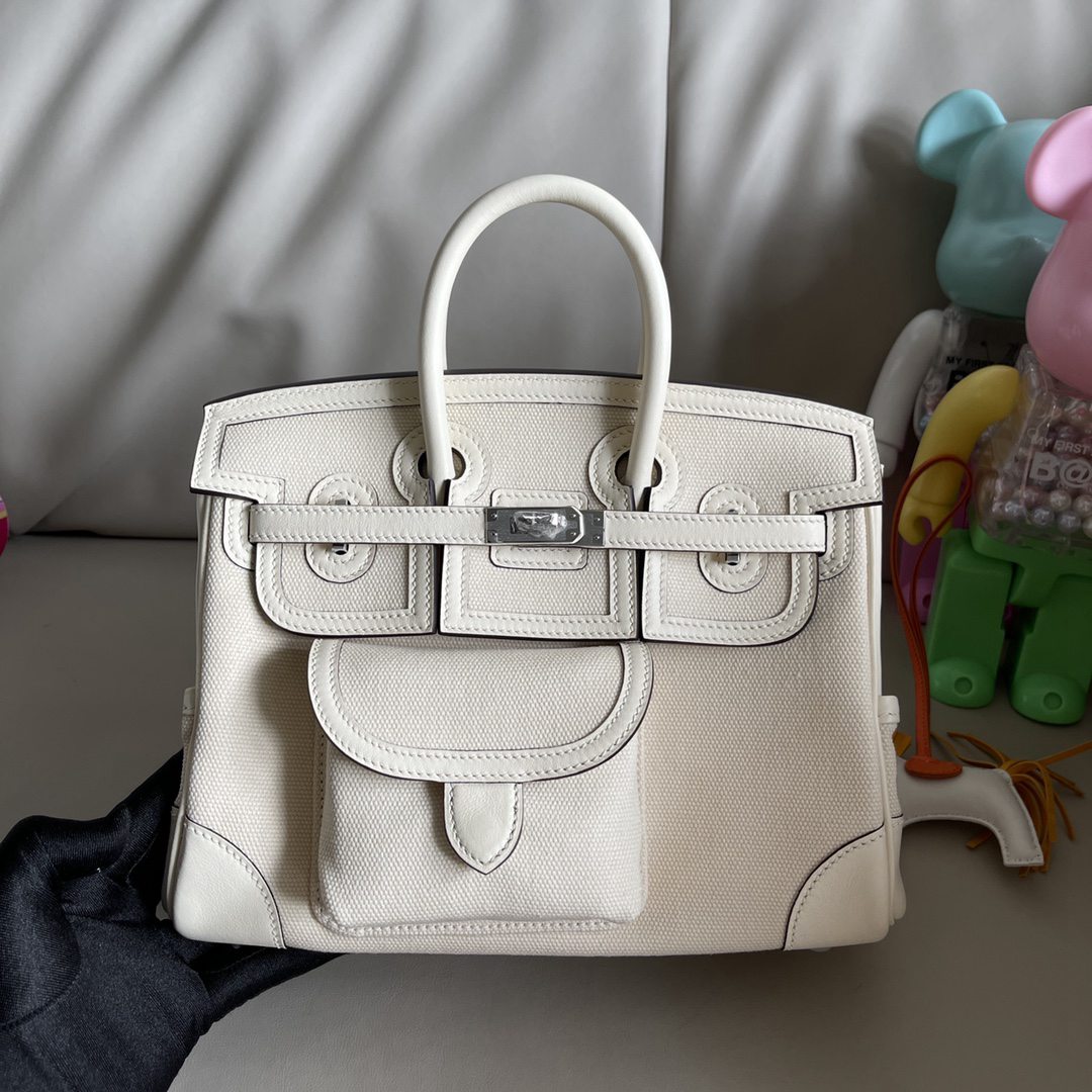 Hermes Birkin Cargo HAC 25 Craie Canvas & White Box Calf Palladium Hardware