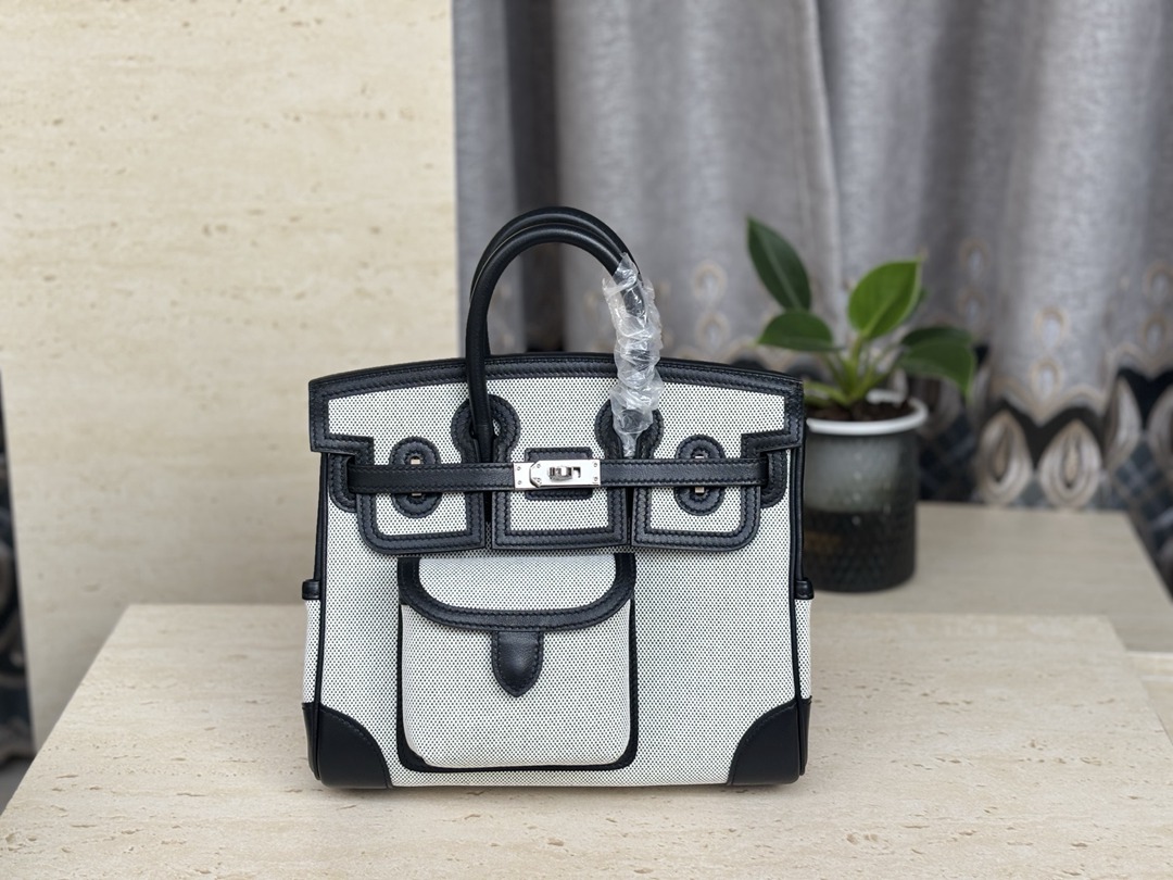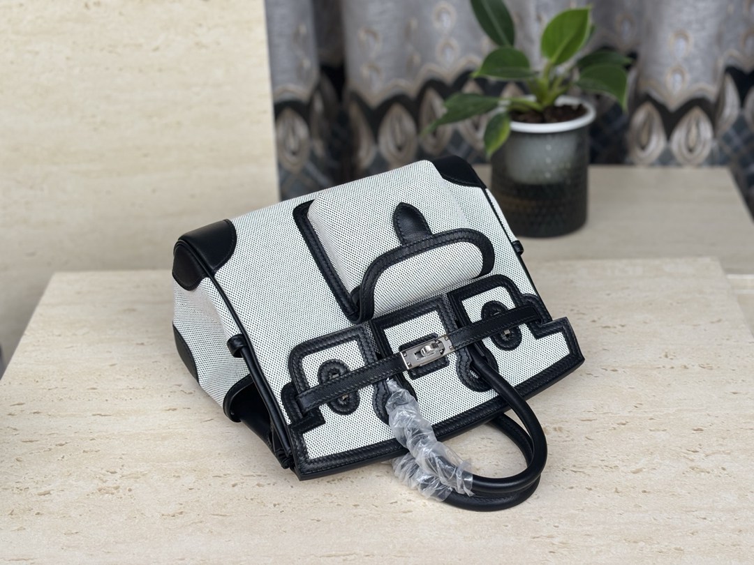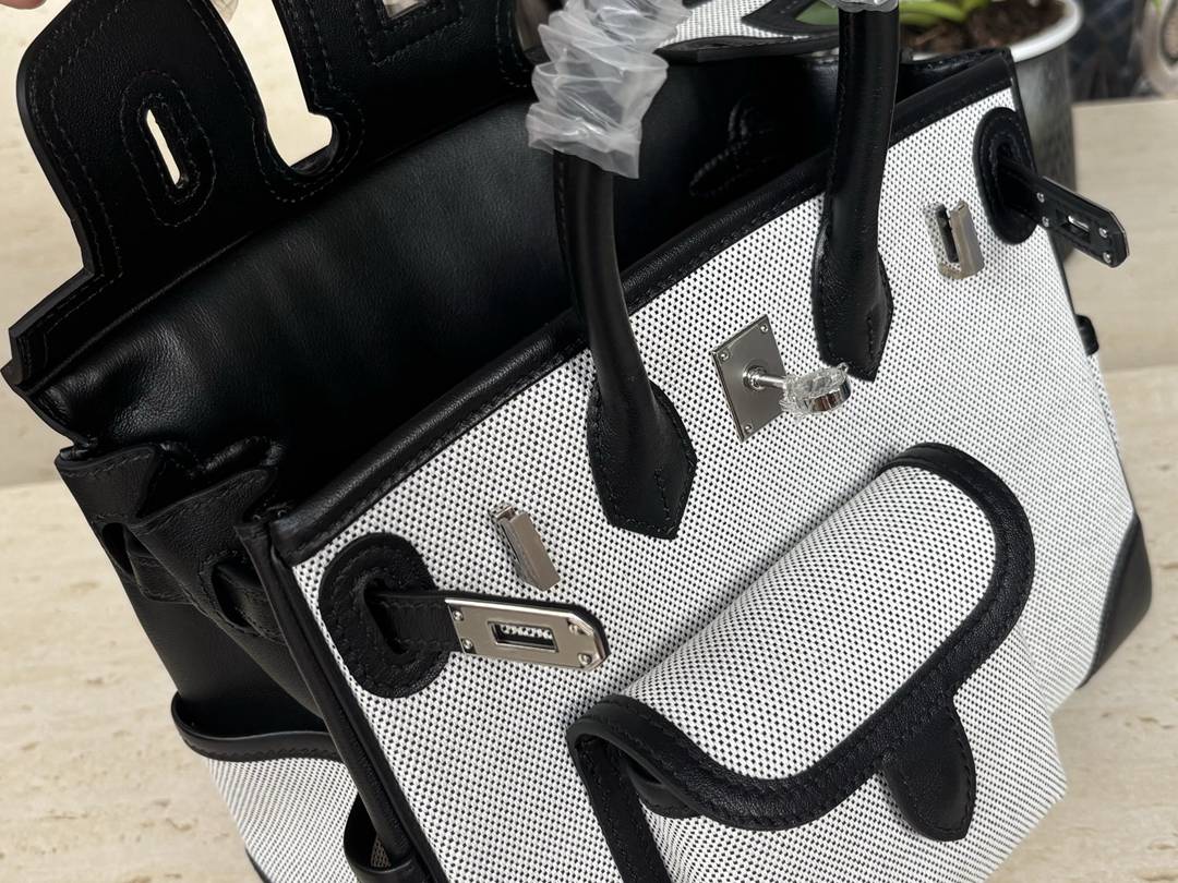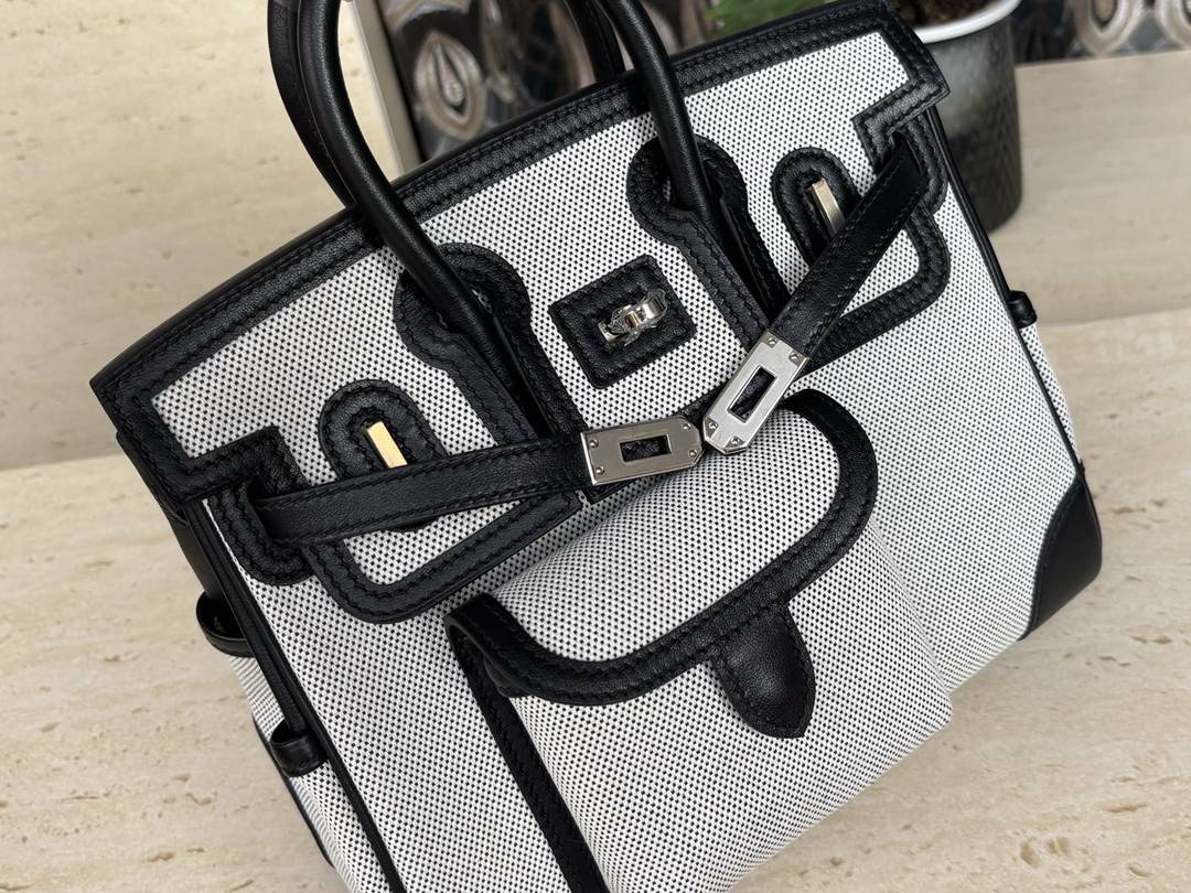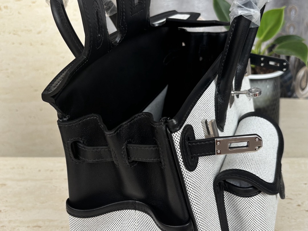 Hermes Birkin Cargo HAC 25 Bleu Glacier Canvas & Black Box Calf Palladium Hardware