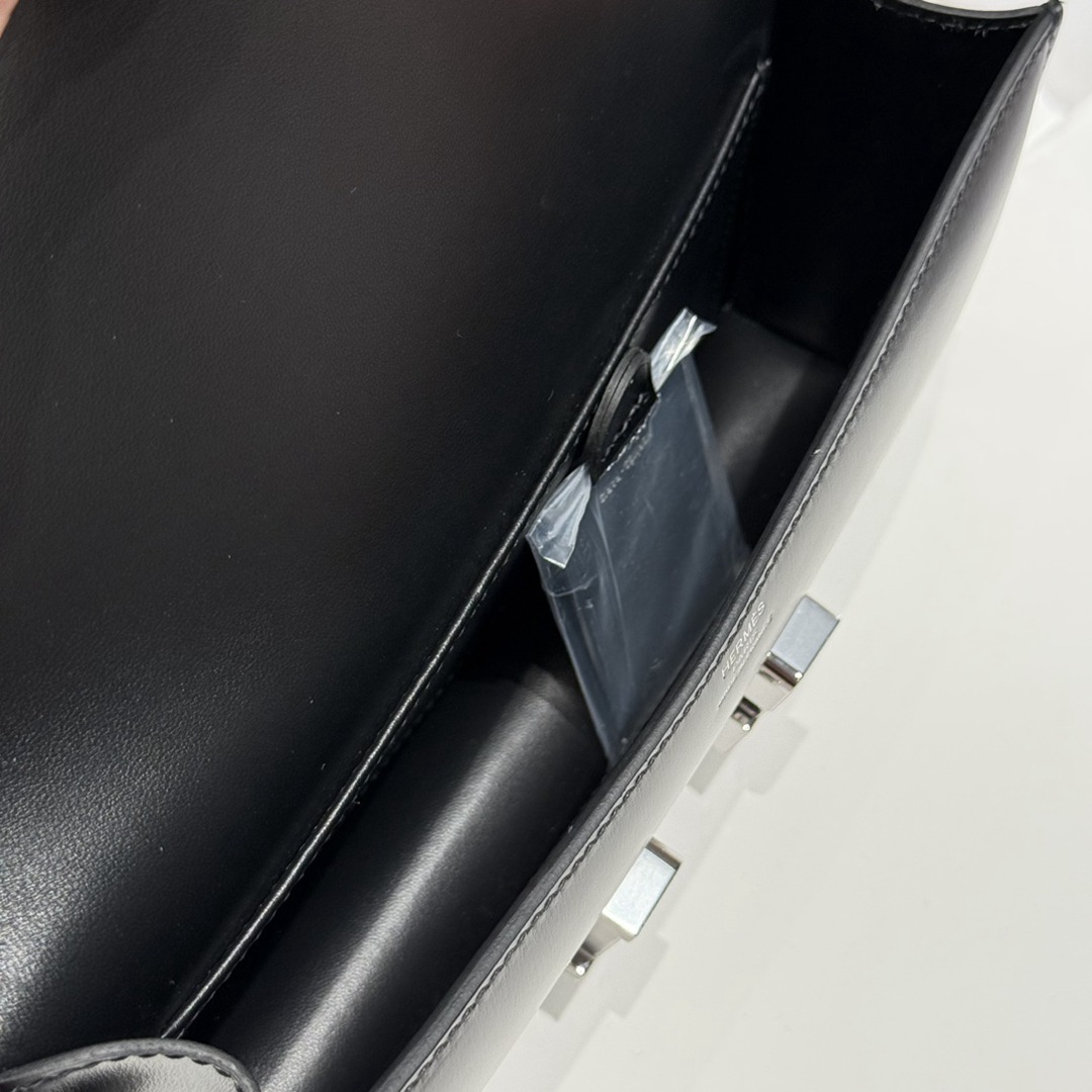 Hermes Constance Elan Epsom Shoulder Bag in Noir Silver Hardware