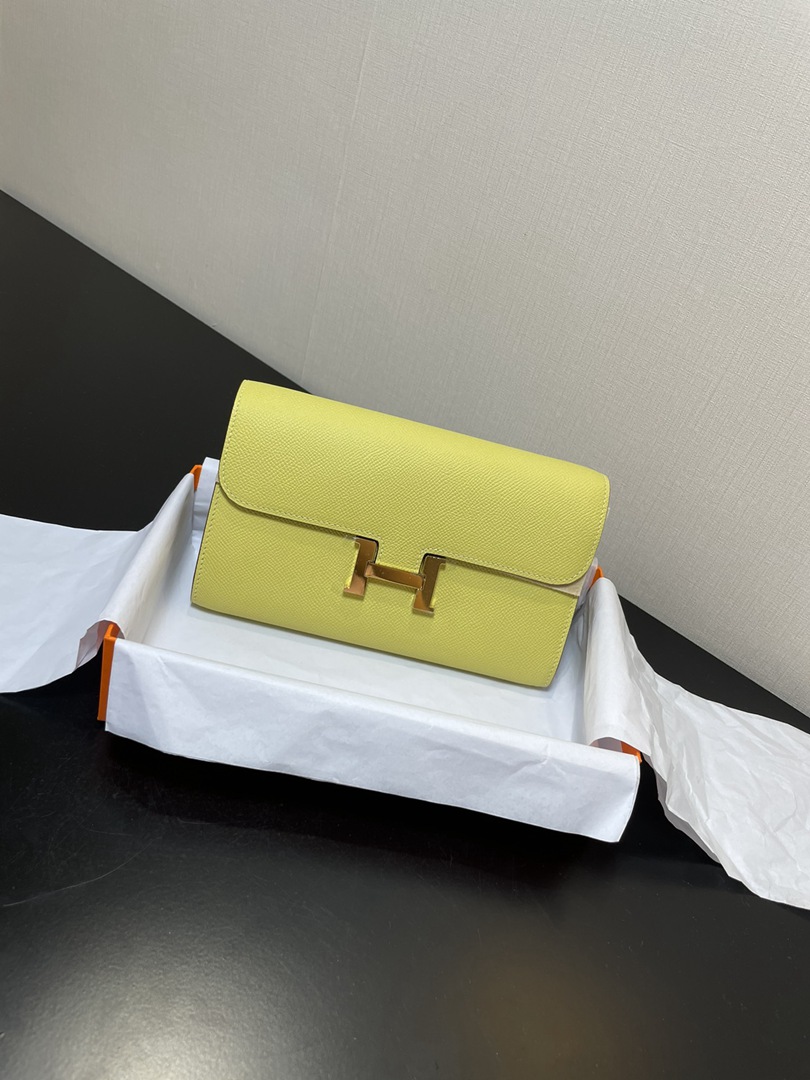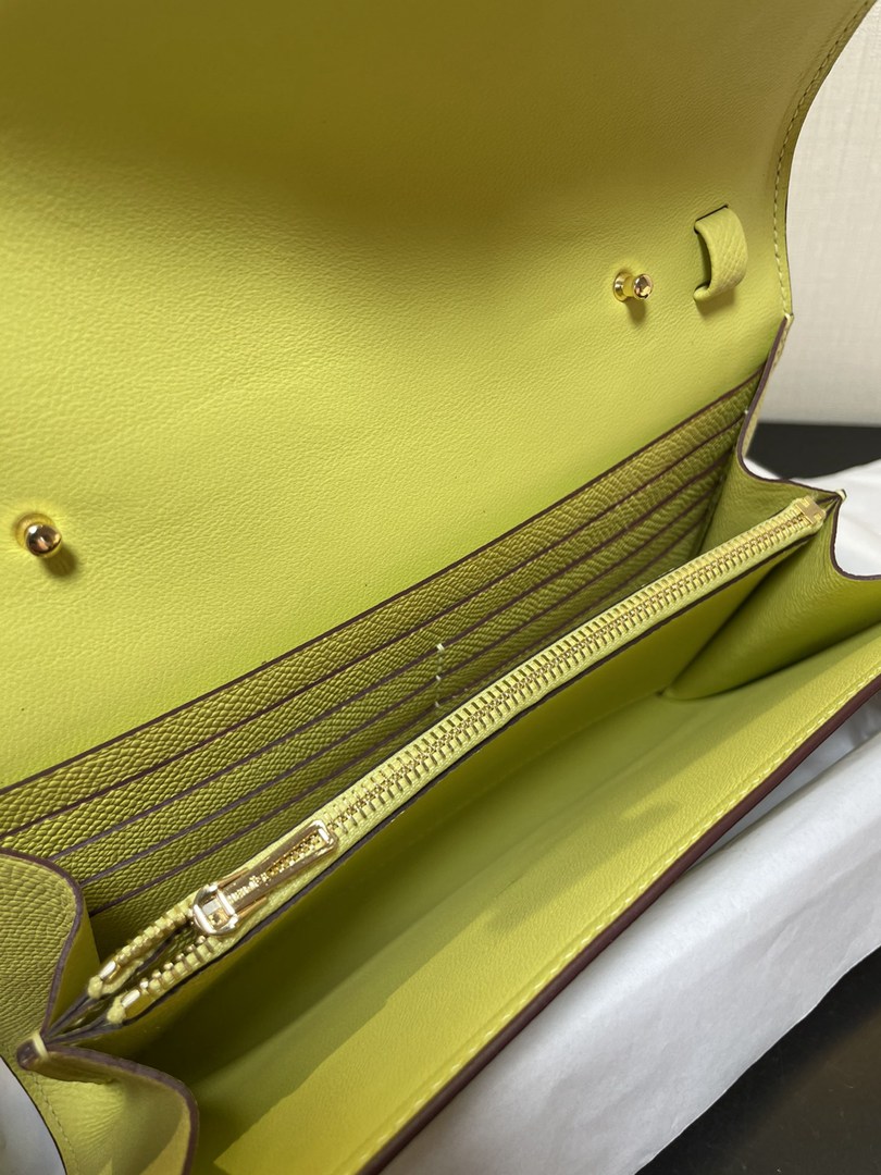 Hermes Constance Epsom Long To Go Wallet Jaune Citron Golden Hardware
