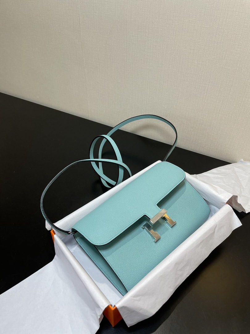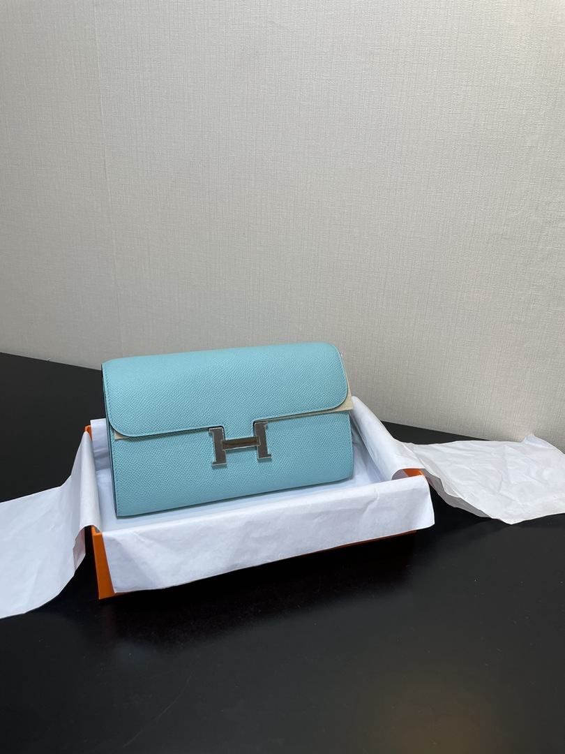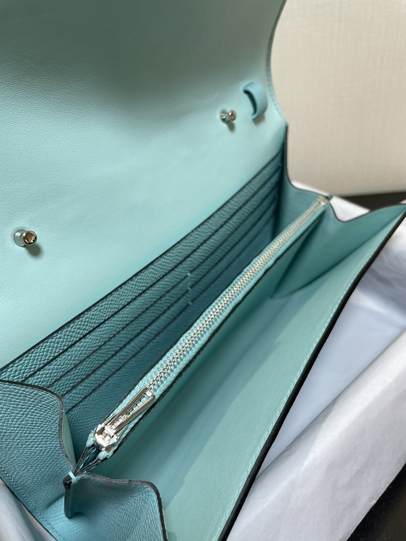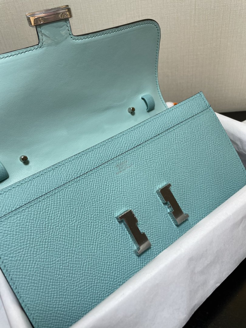 Hermes Constance Epsom Long To Go Wallet Bleu Atoll Silver Hardware
