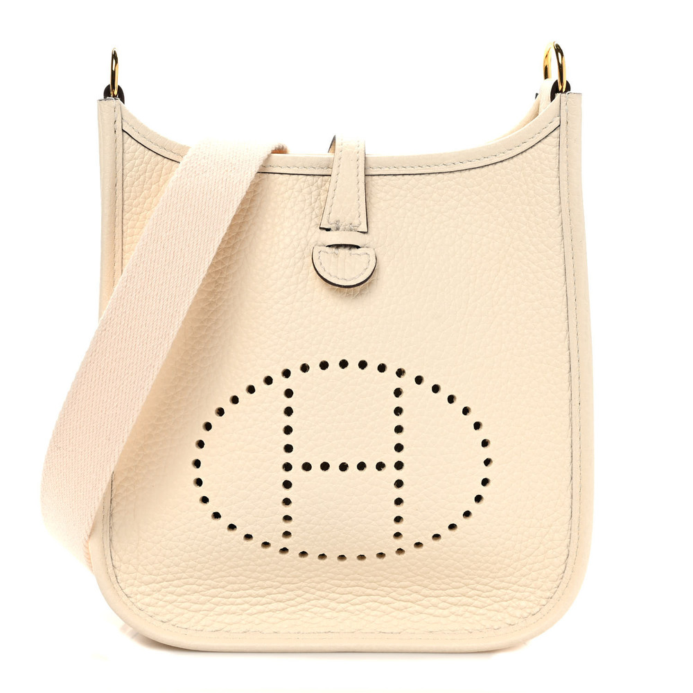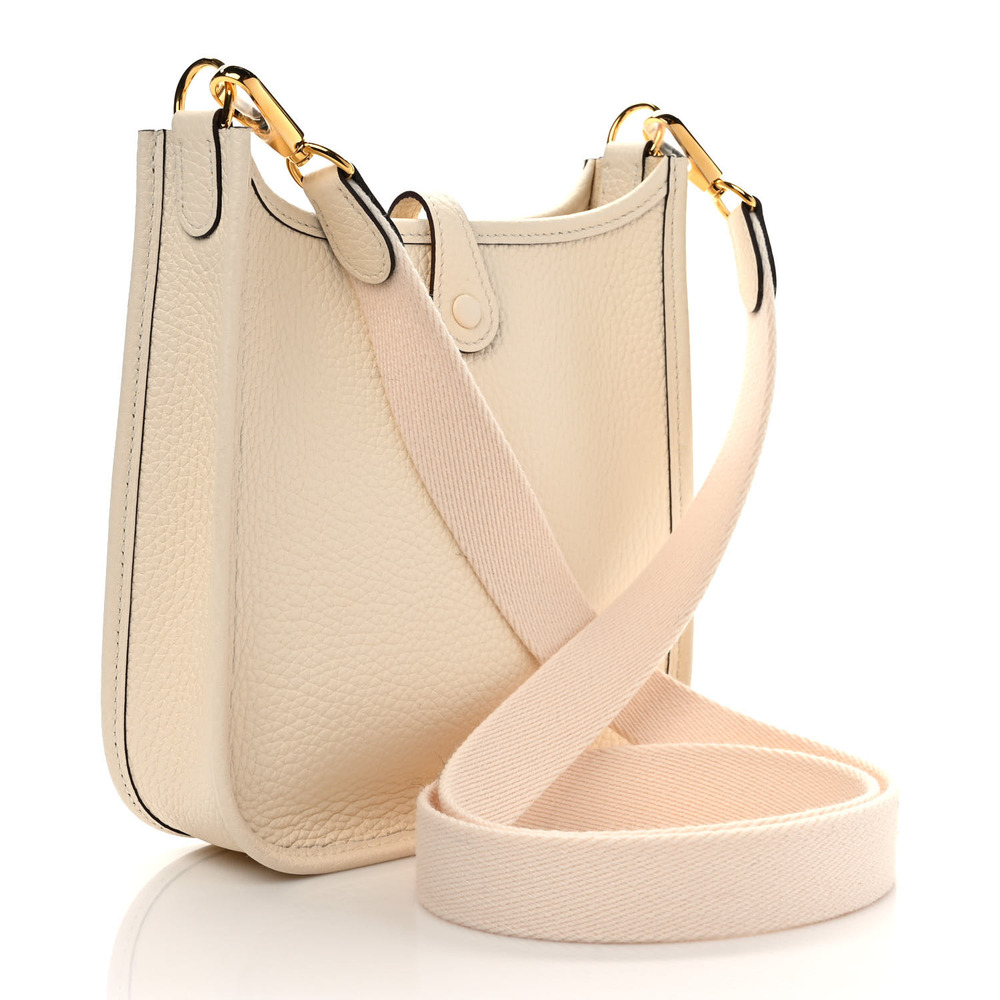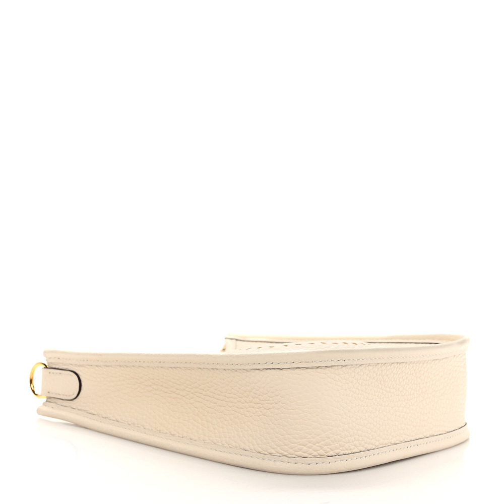 This Evelyne is in Vert Cypress Clemence leather with palladium hardware, has tonal stitching, pull tab top closure and a multicolored removable canvas and leather shoulder/crossbody strap.