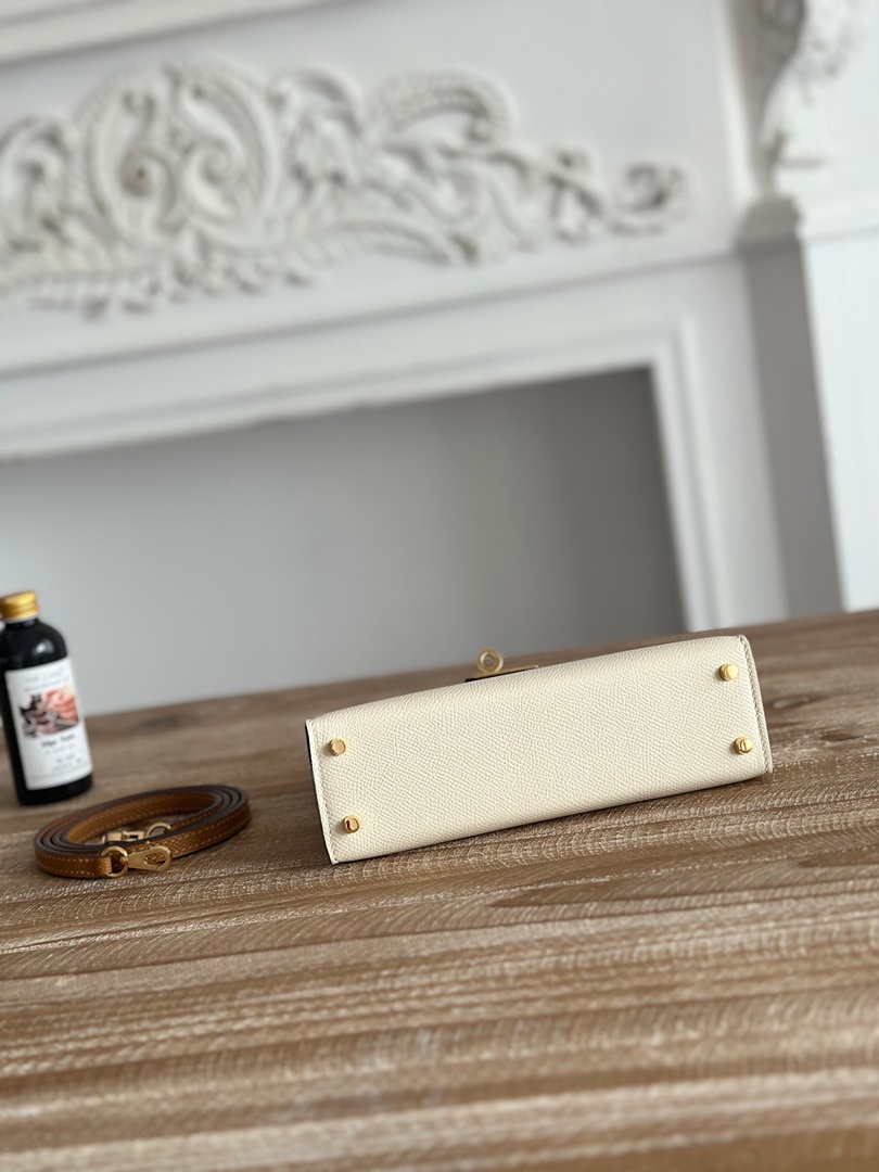 Hermes Mini Kelly II Handbag in Craie Sesame and Jaune Poussin