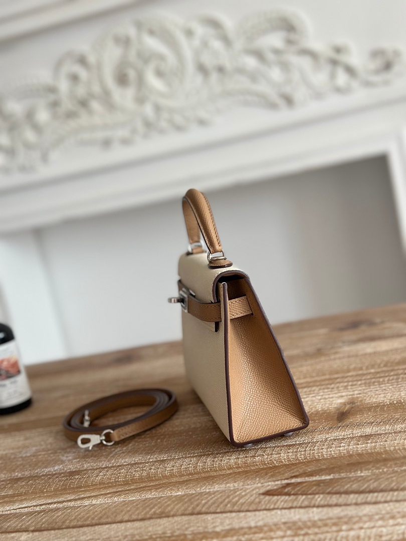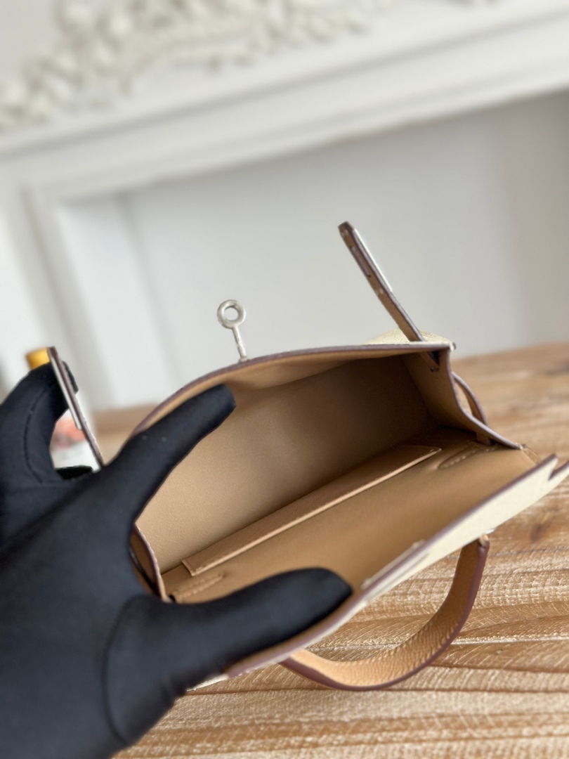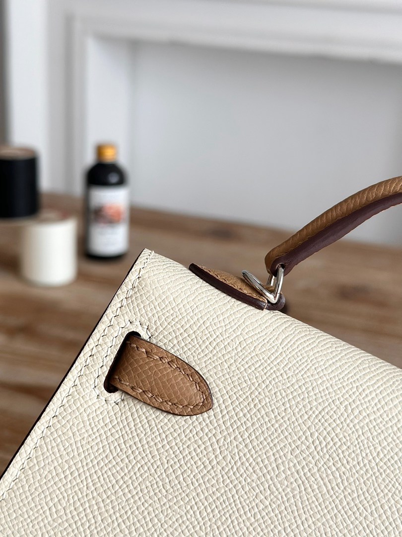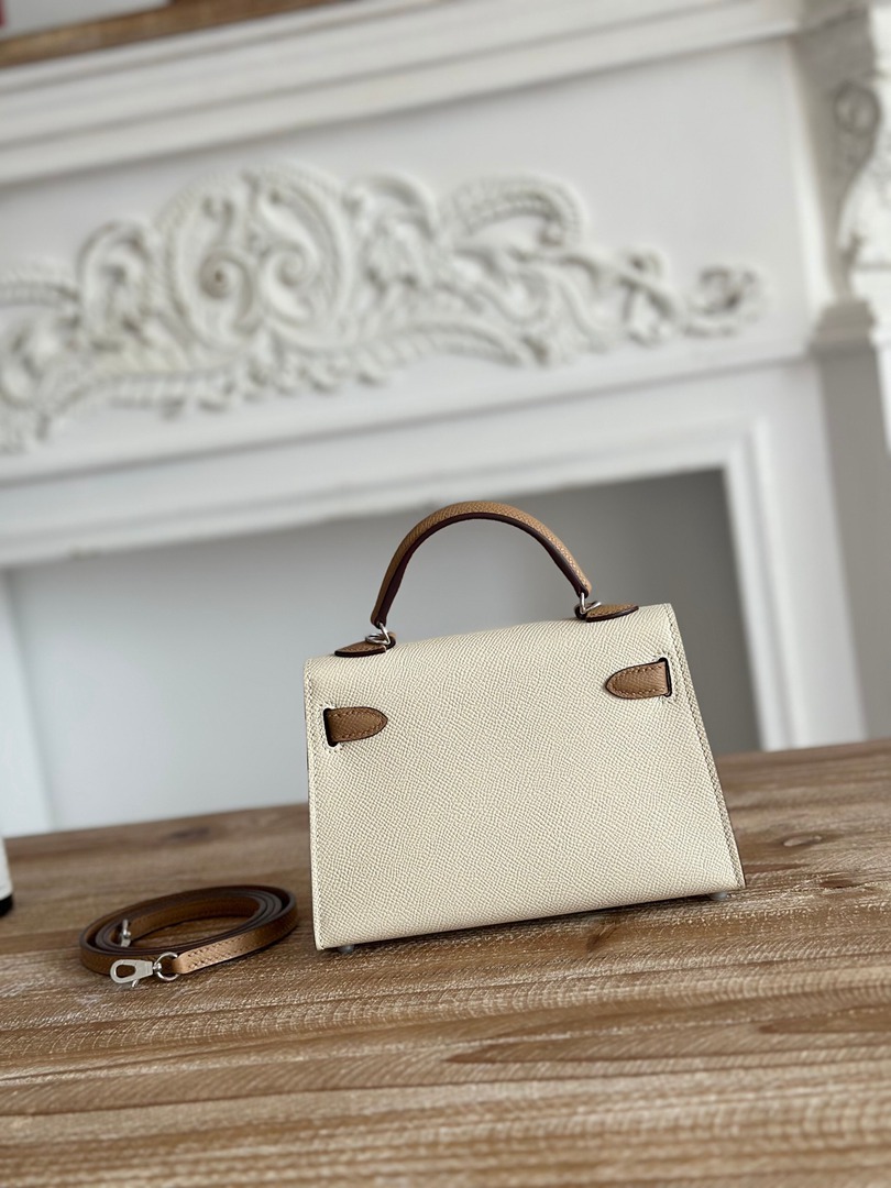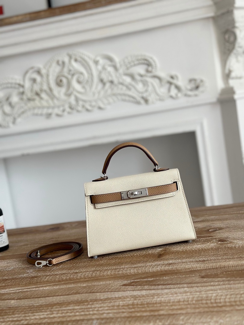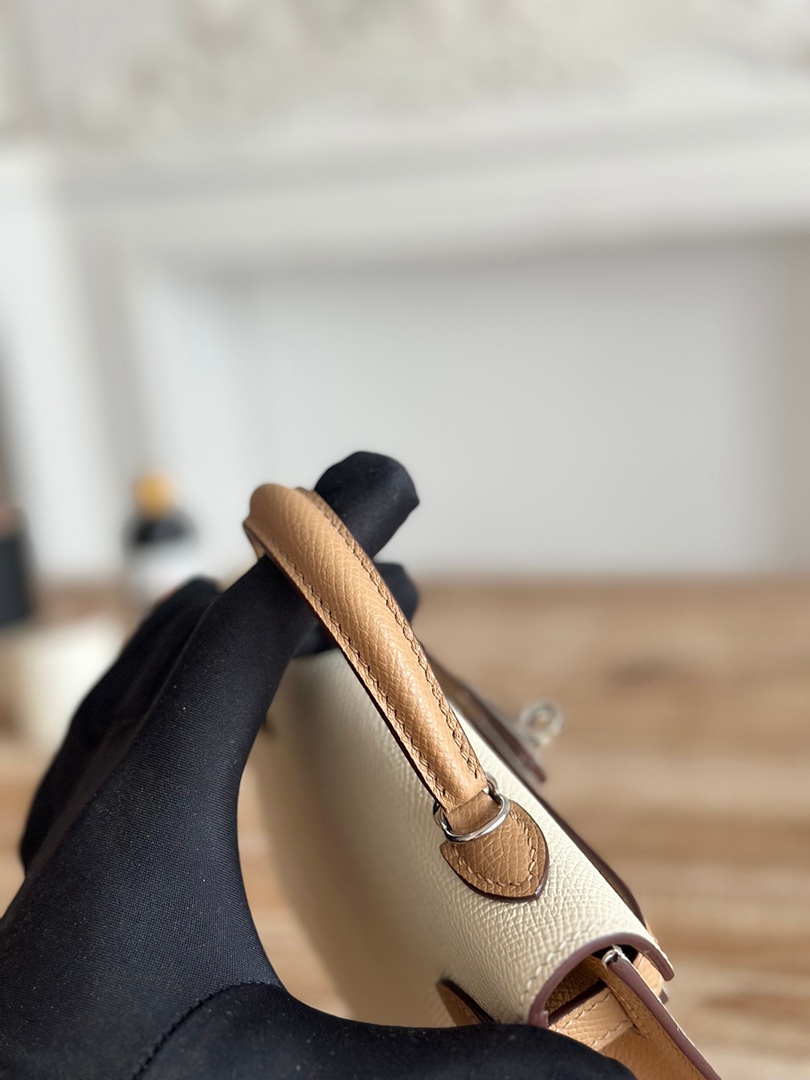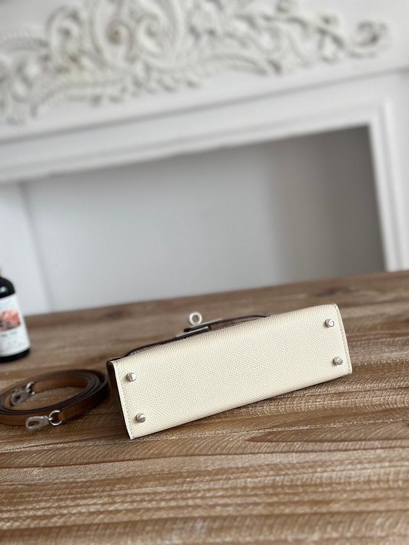 Hermes Mini Kelly II Handbag in Craie and Gris Pale Epsom Leather with Silver Hardware