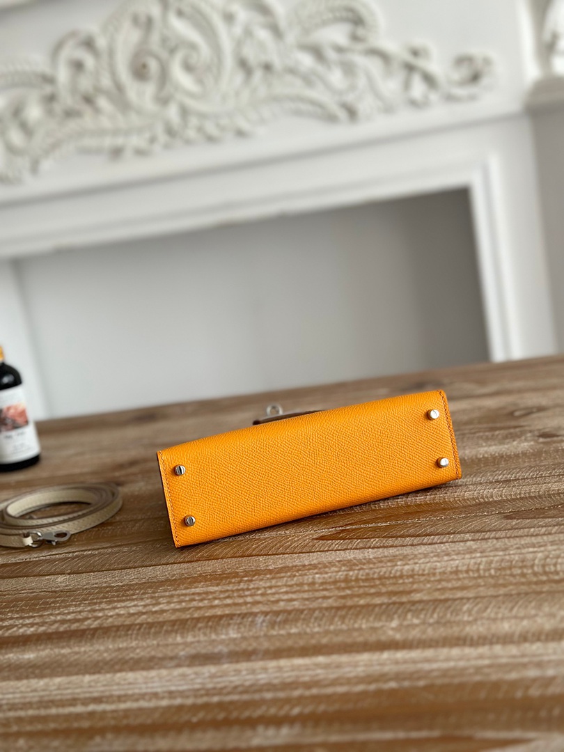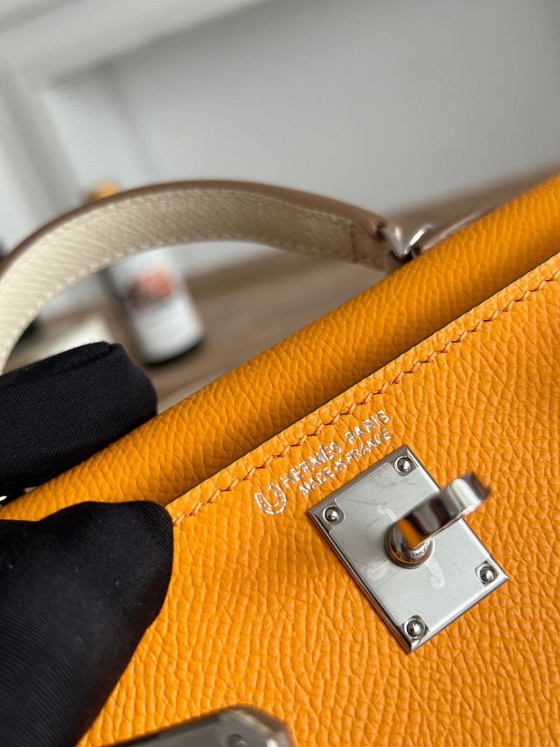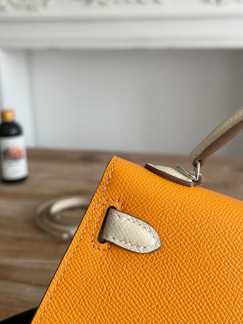 Hermes Mini Kelly II Handbag in Juane D'or and Craie Epsom Leather with Silver Hardware