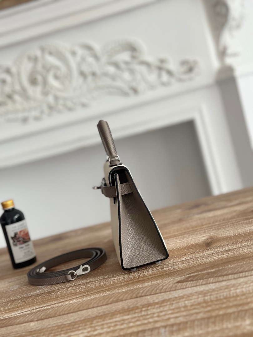 Hermes Mini Kelly II Handbag in Craie and Gris Asphalte