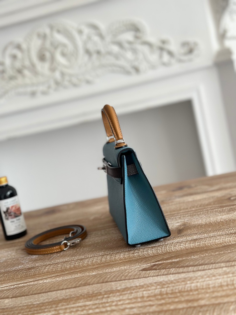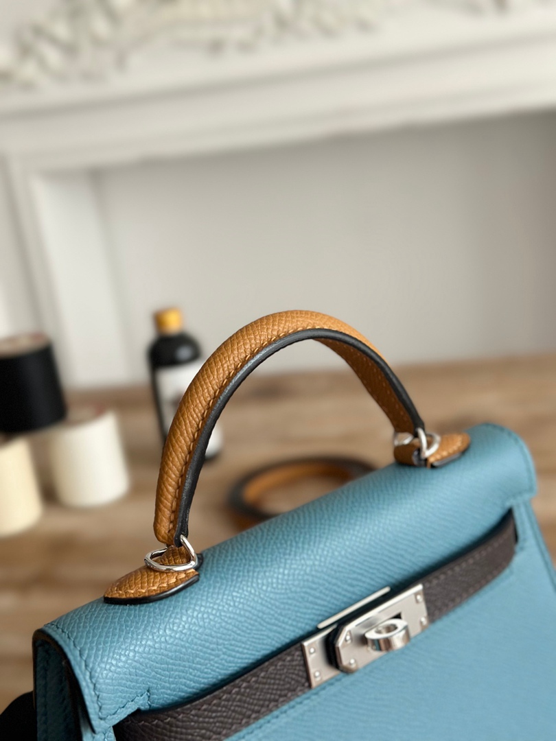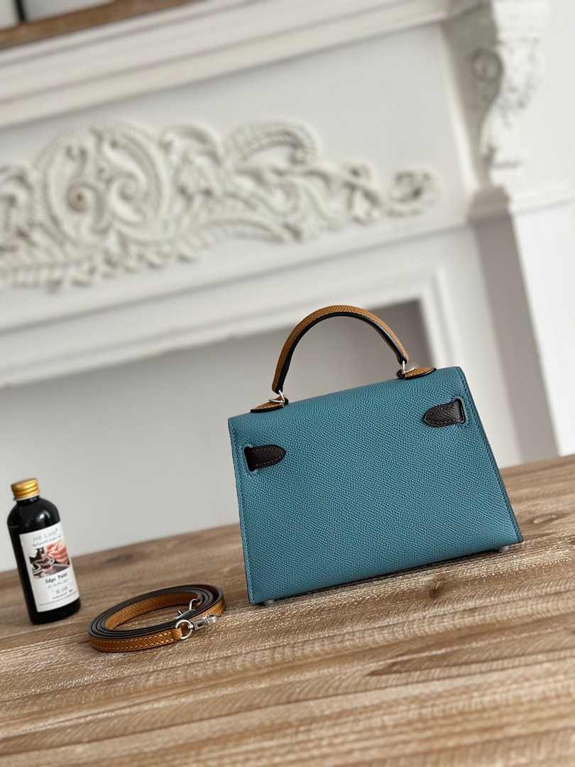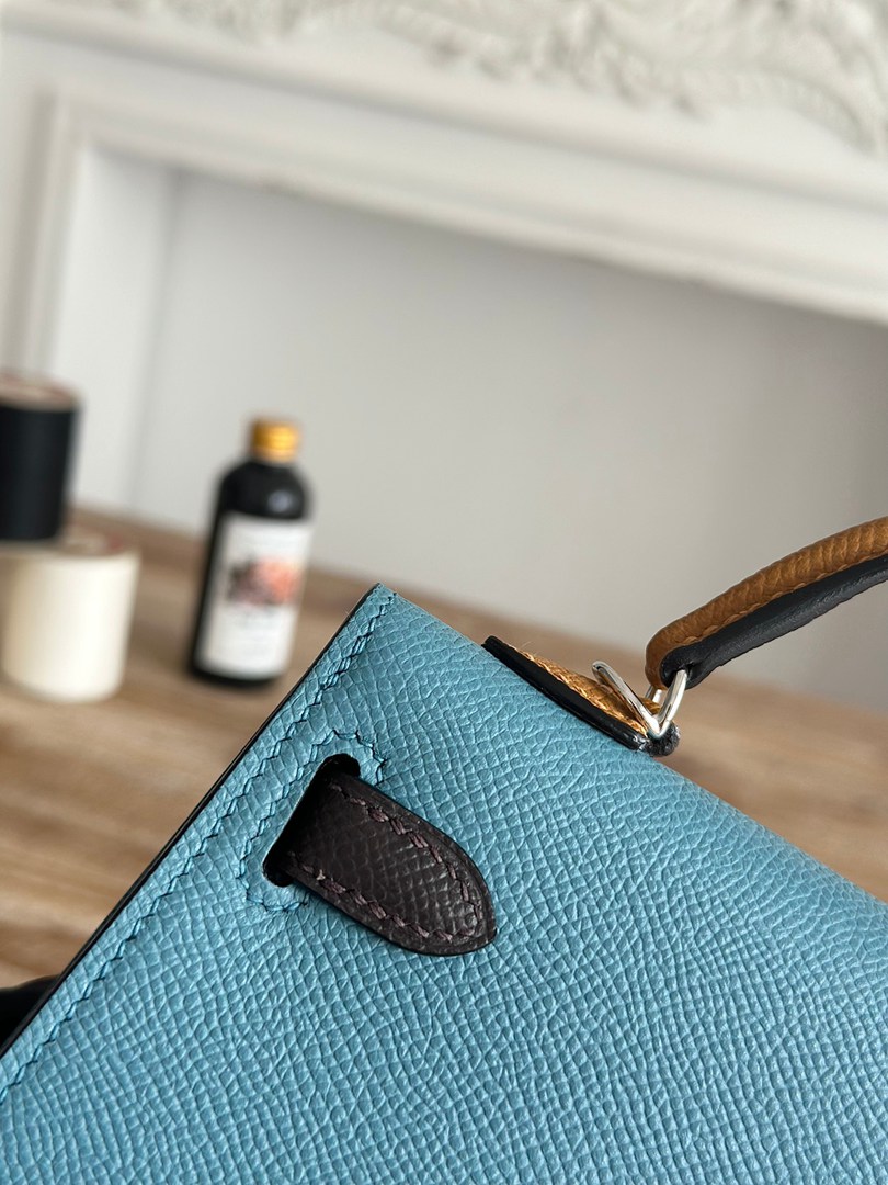 Hermes Mini Kelly II Handbag in Bleu Jean Ecorce and Sesame