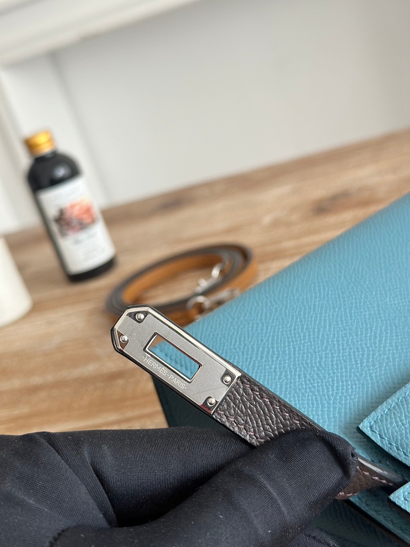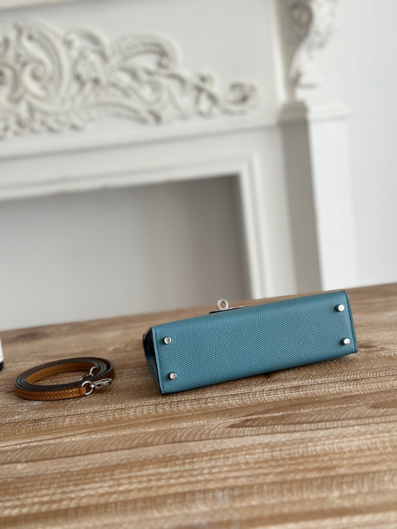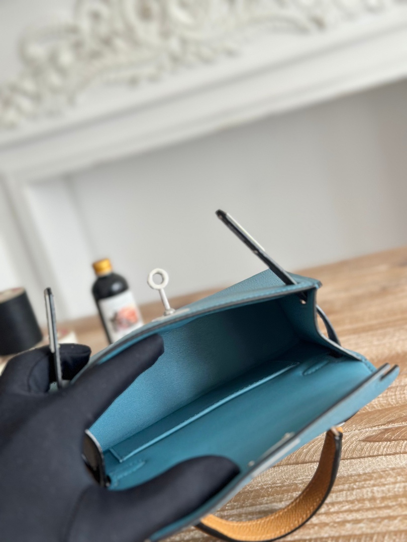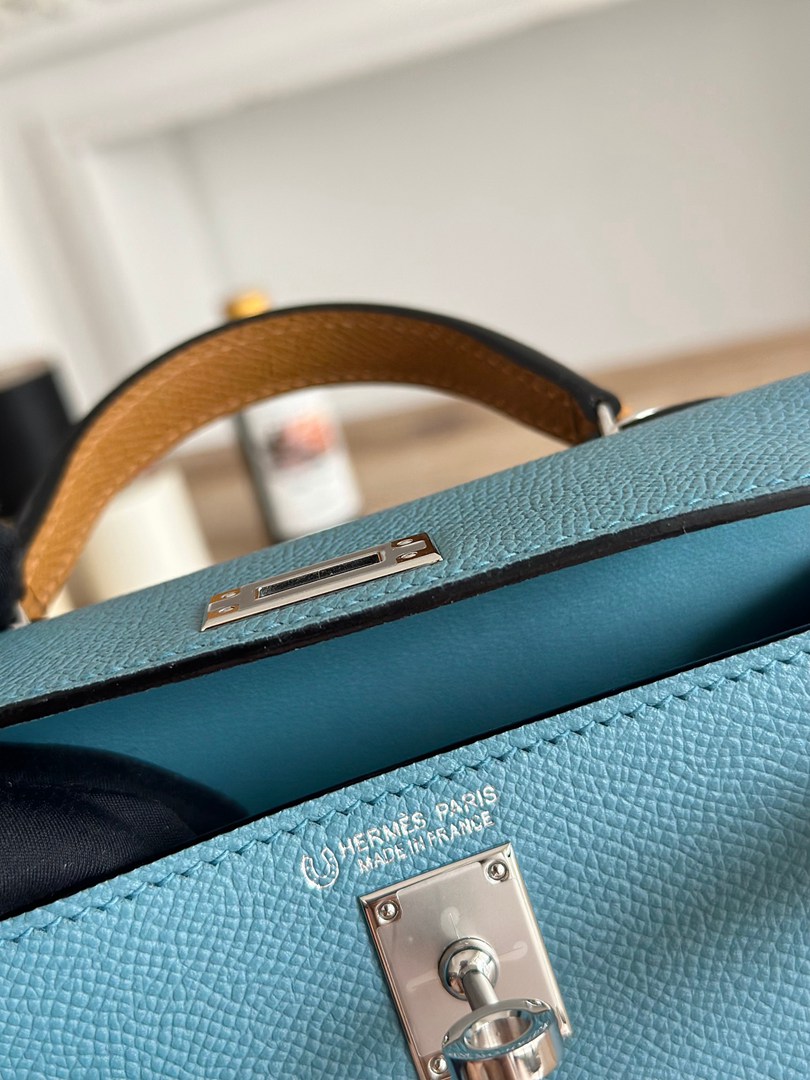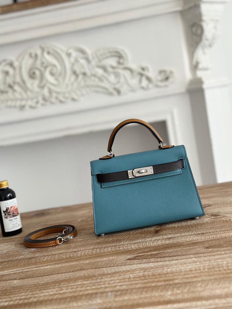Hermes Mini Kelly II Handbag in Bleu Jean Ecorce and Sesame