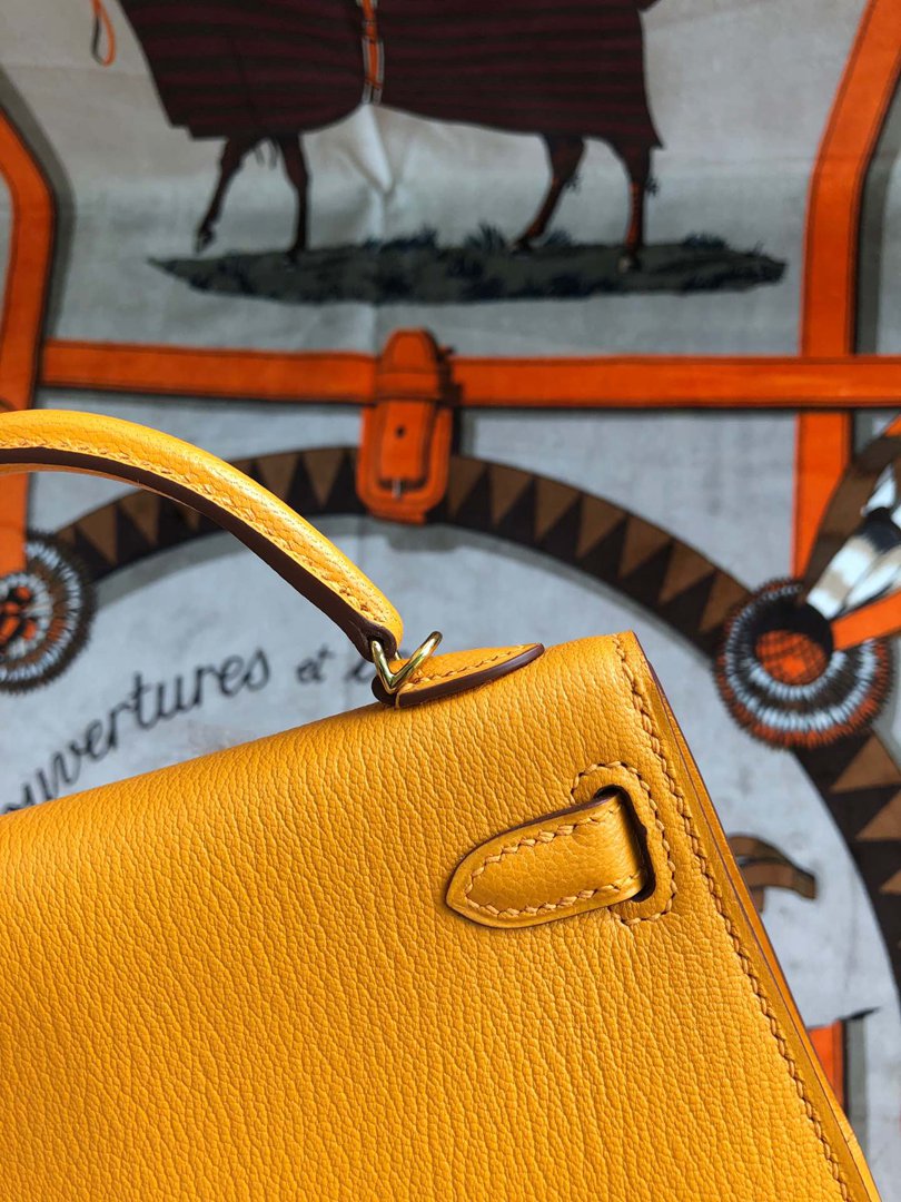 Hermes Mini Kelly II Chevre Handbag in Jaune de naples Golden Haredware