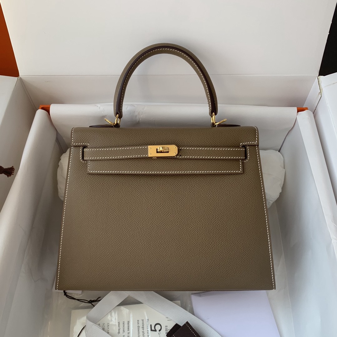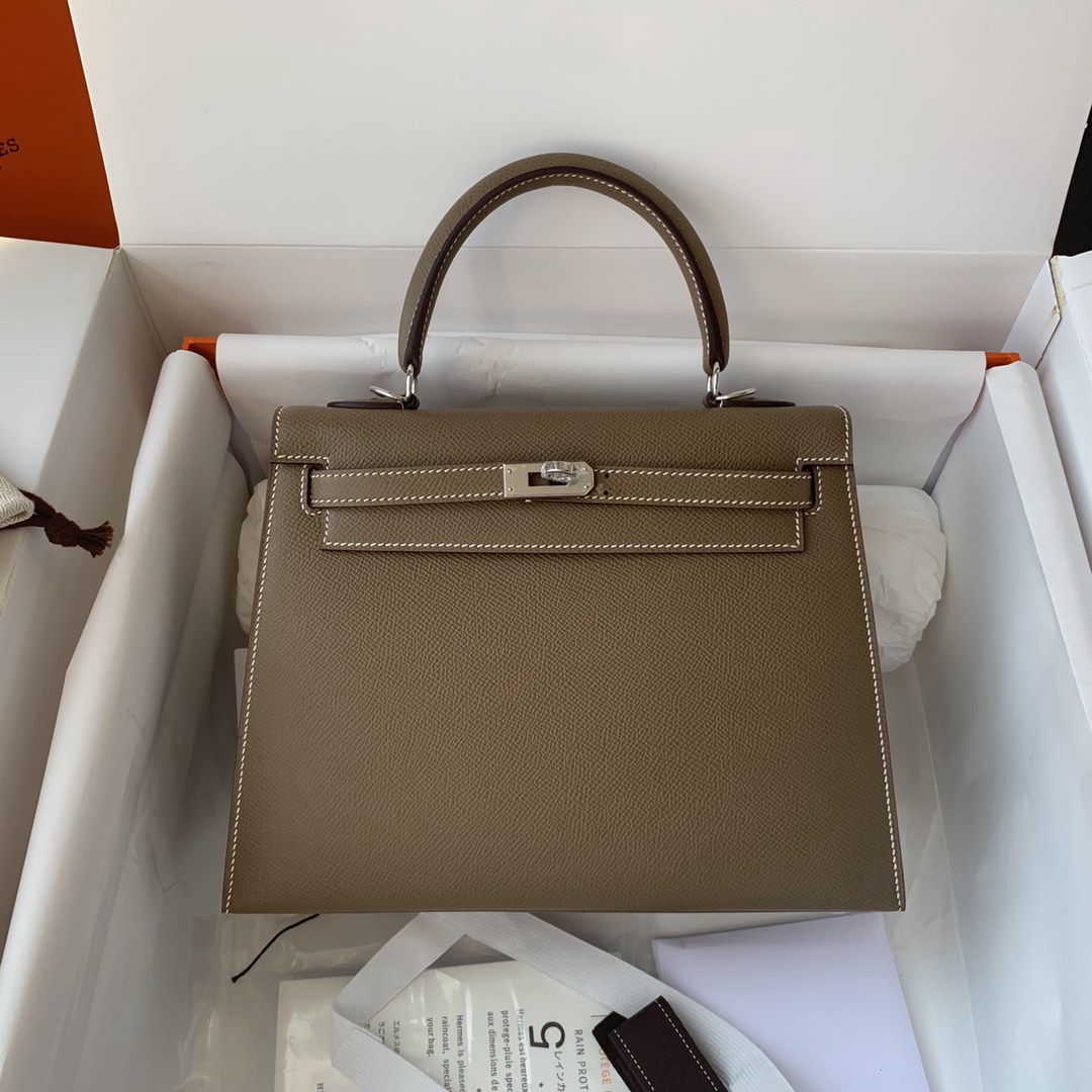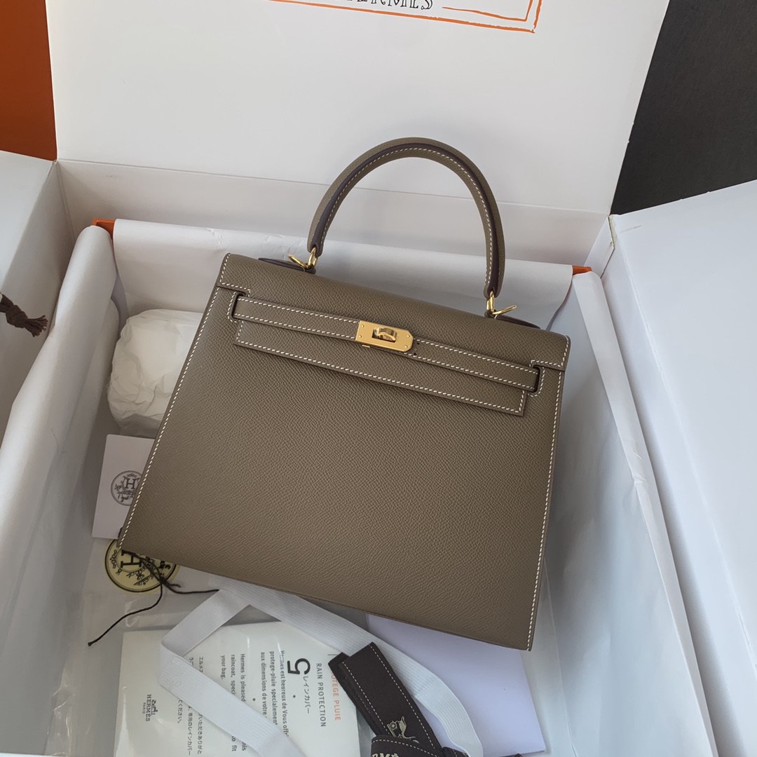 Hermes Epsom Kelly Sellier 25 Handbag in Etoupe