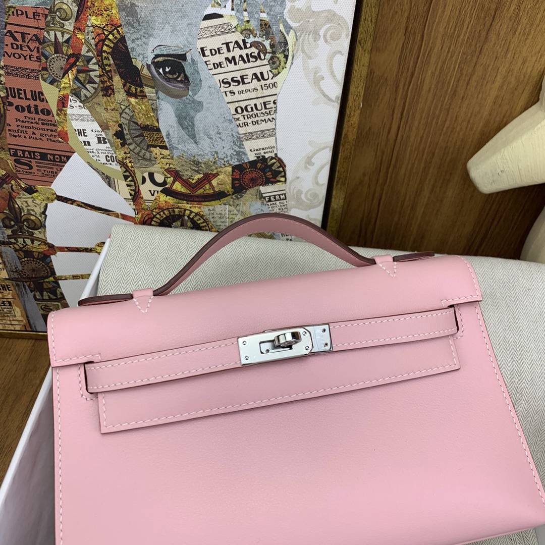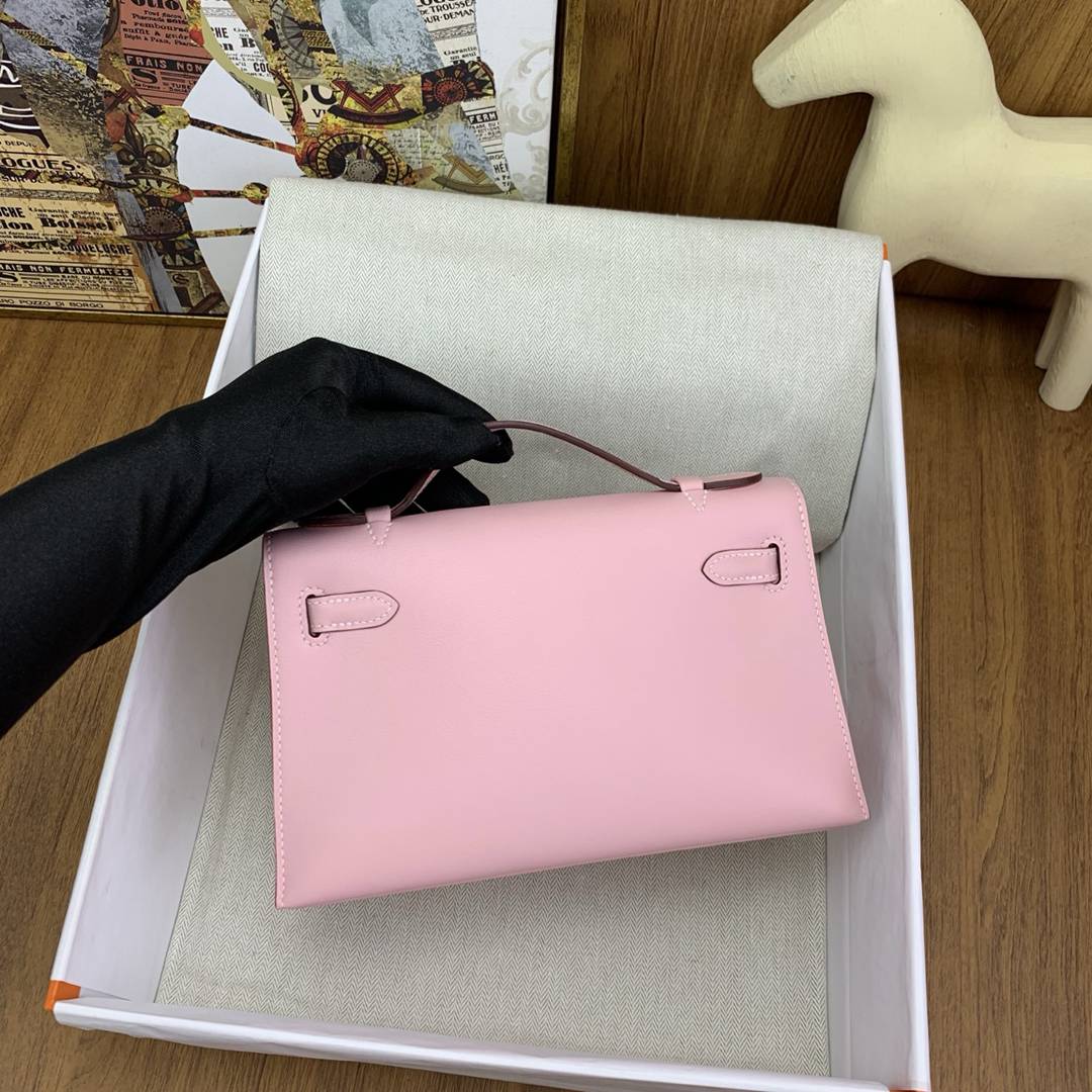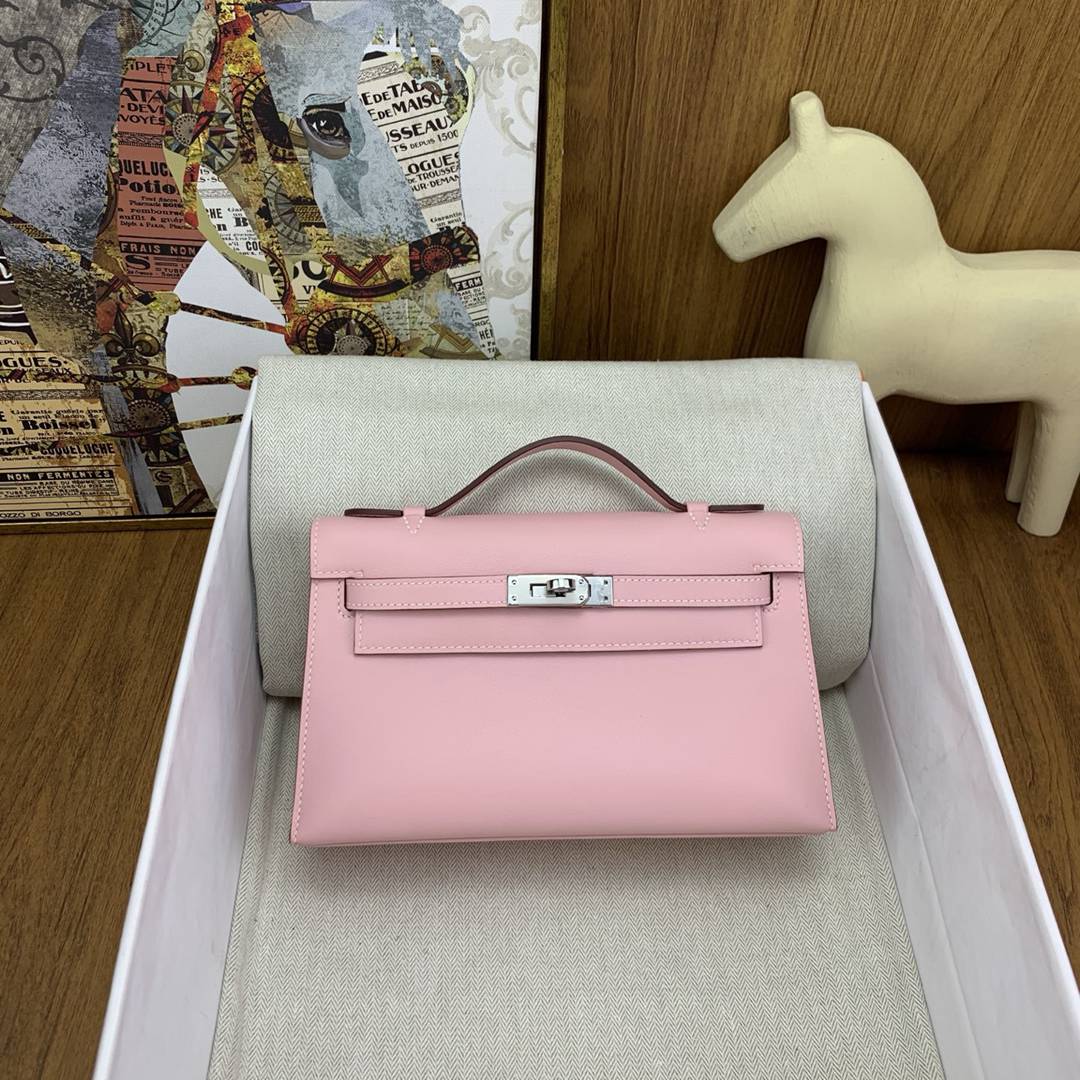Hermes Kelly Pochette Swift Mauve Sylvester with Gold Hardware
