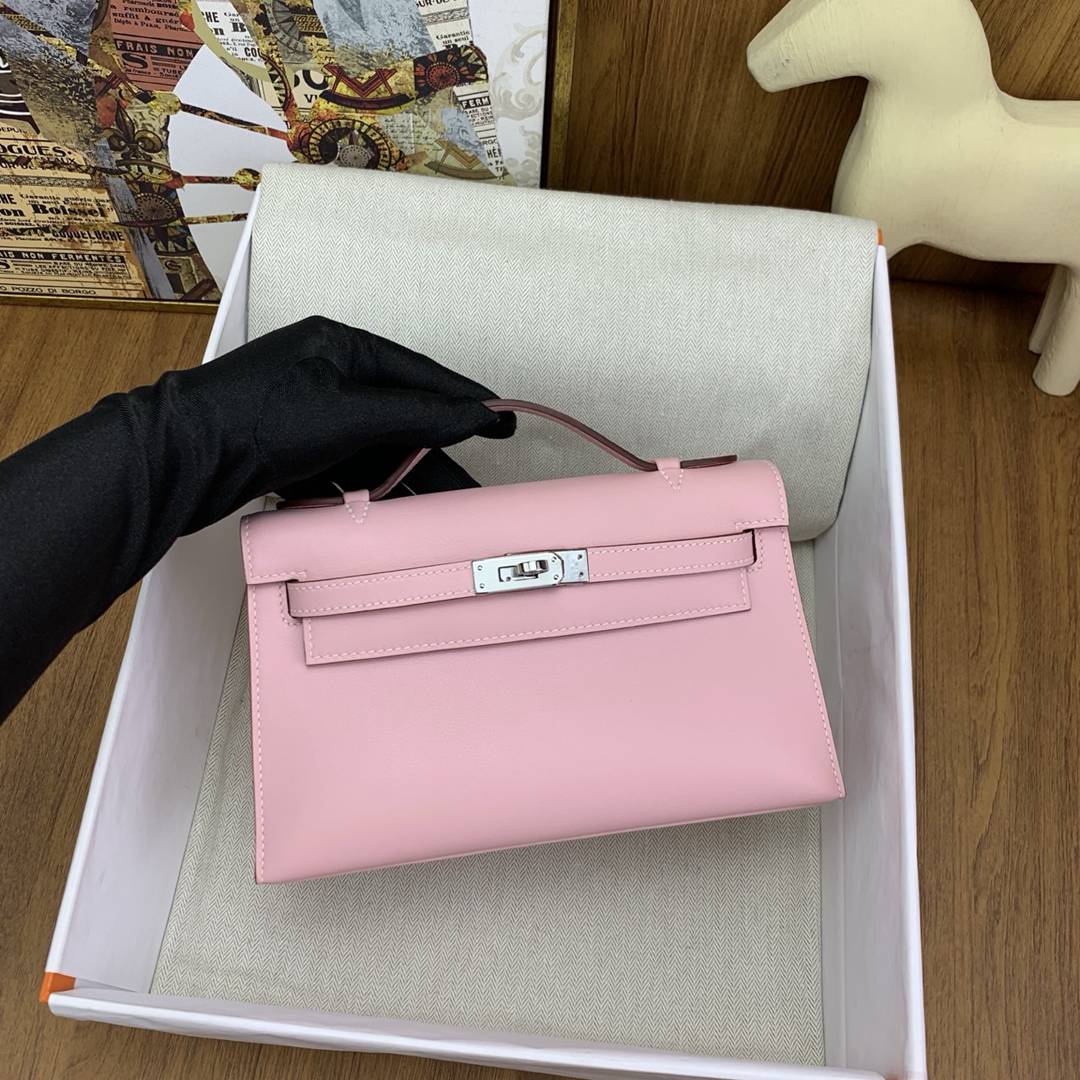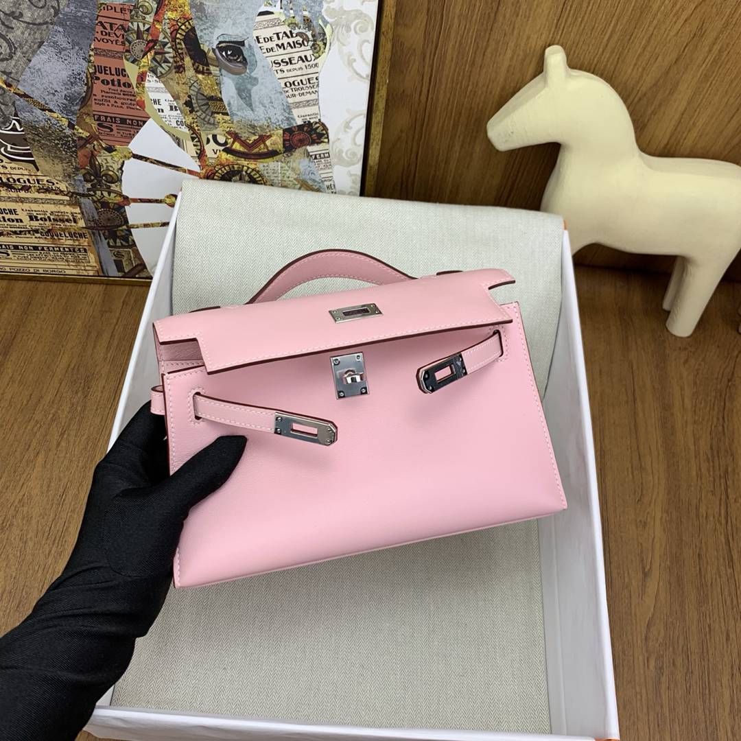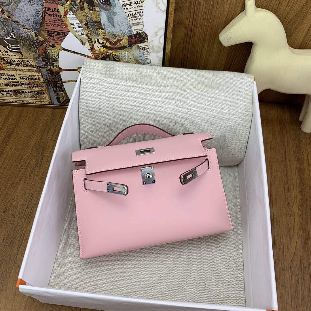Hermes Kelly Pochette Swift Mauve Sylvester with Gold Hardware