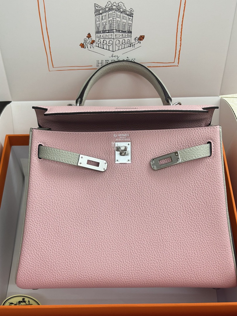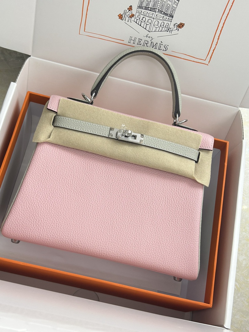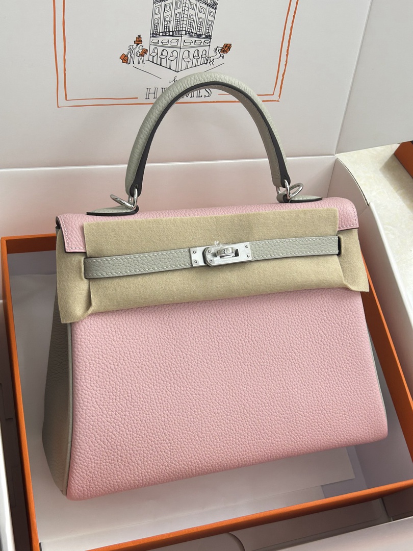 Hermes Kelly 25 Togo Handbags in Mauve Sylvest