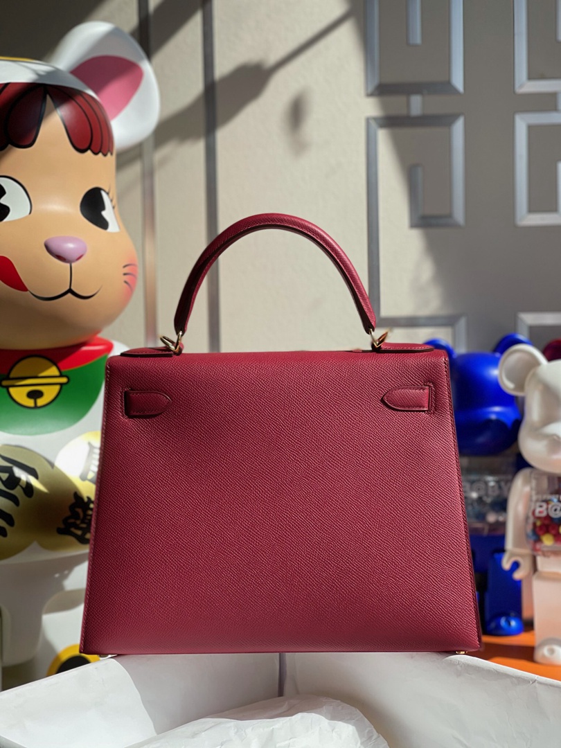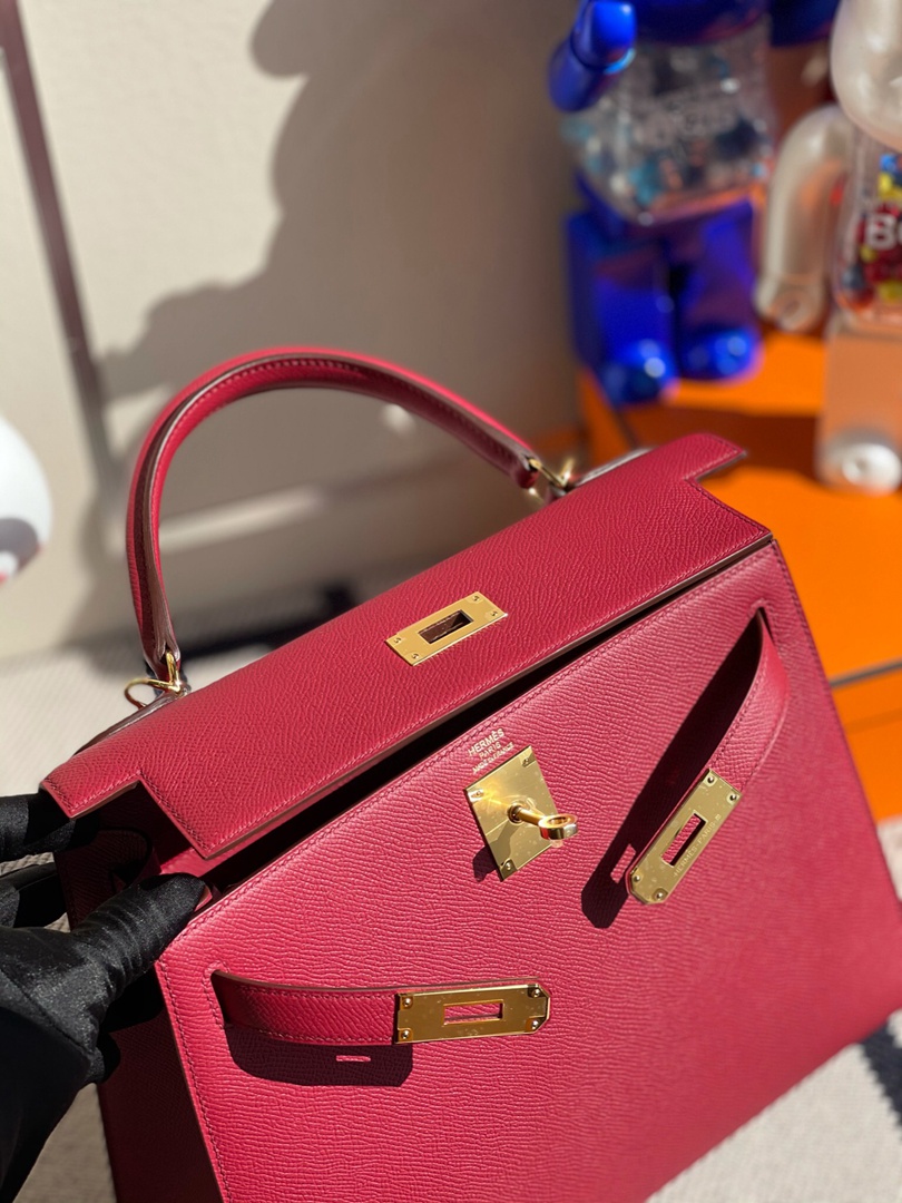 Hermes Kelly 25 Epsom Handbags in Rouge grenat