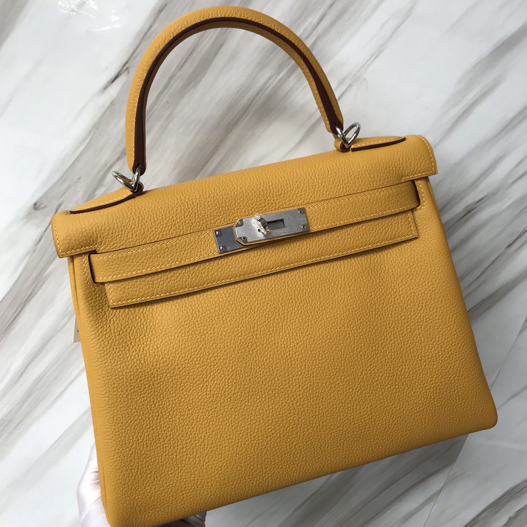 Hermes Kelly 25 Togo Handbags in Jaune Ambre