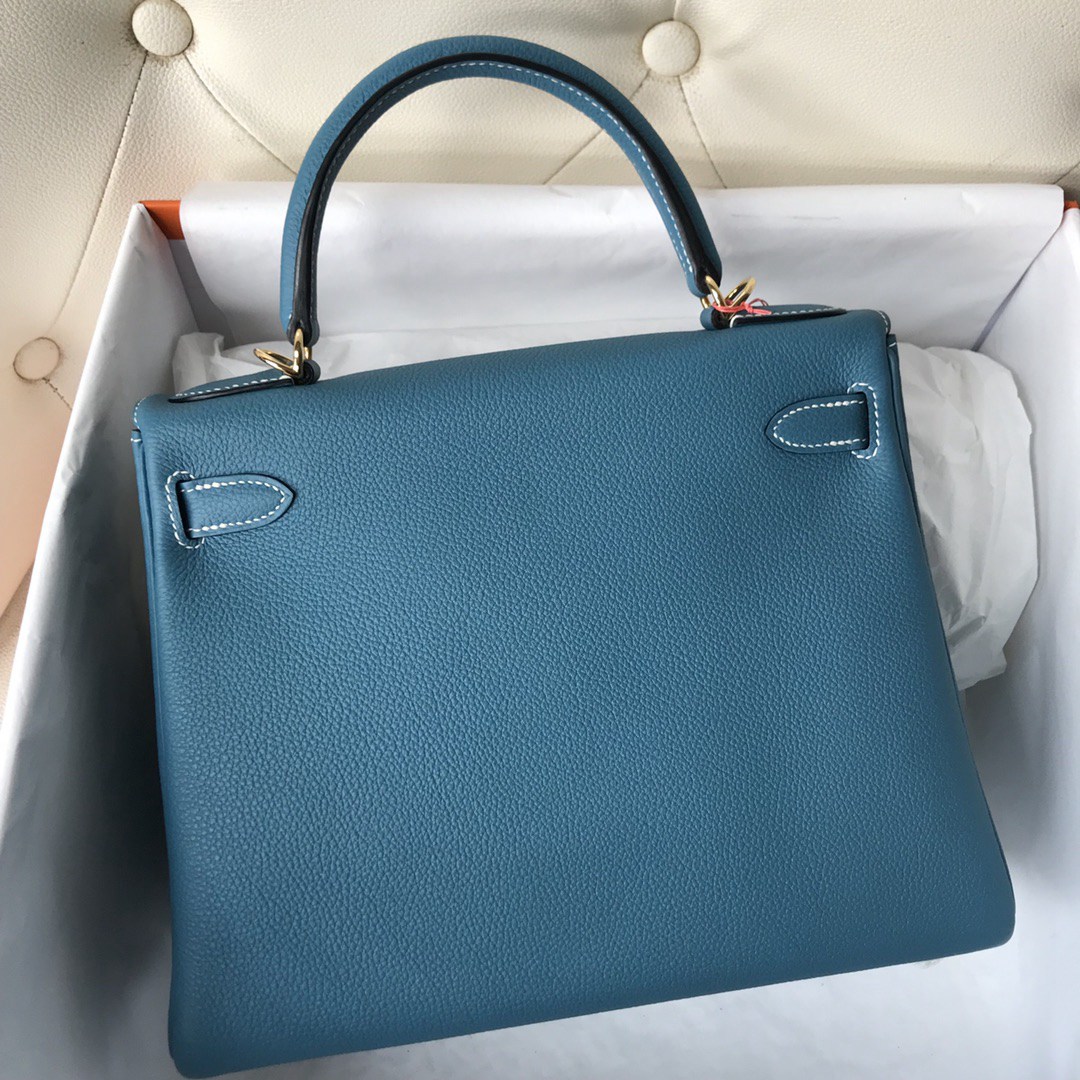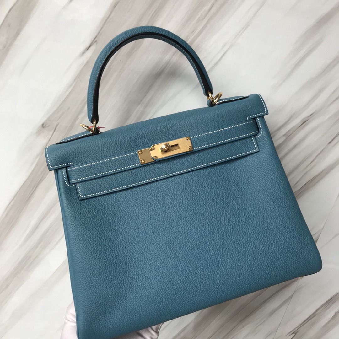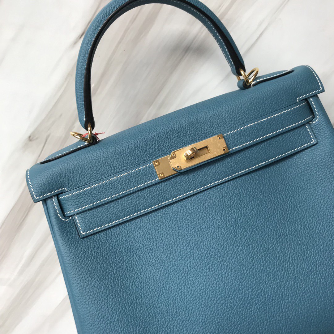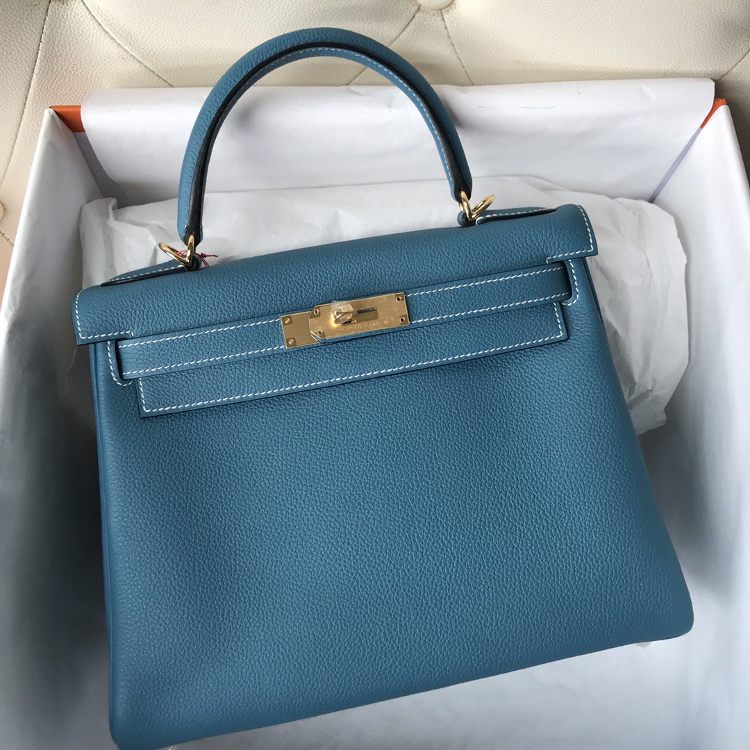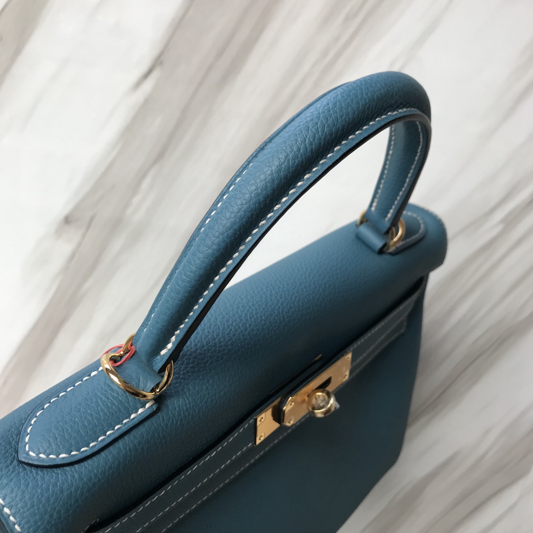 Hermes Kelly 25 Togo Handbags in Bleu Jean
