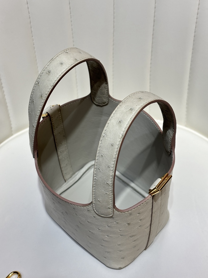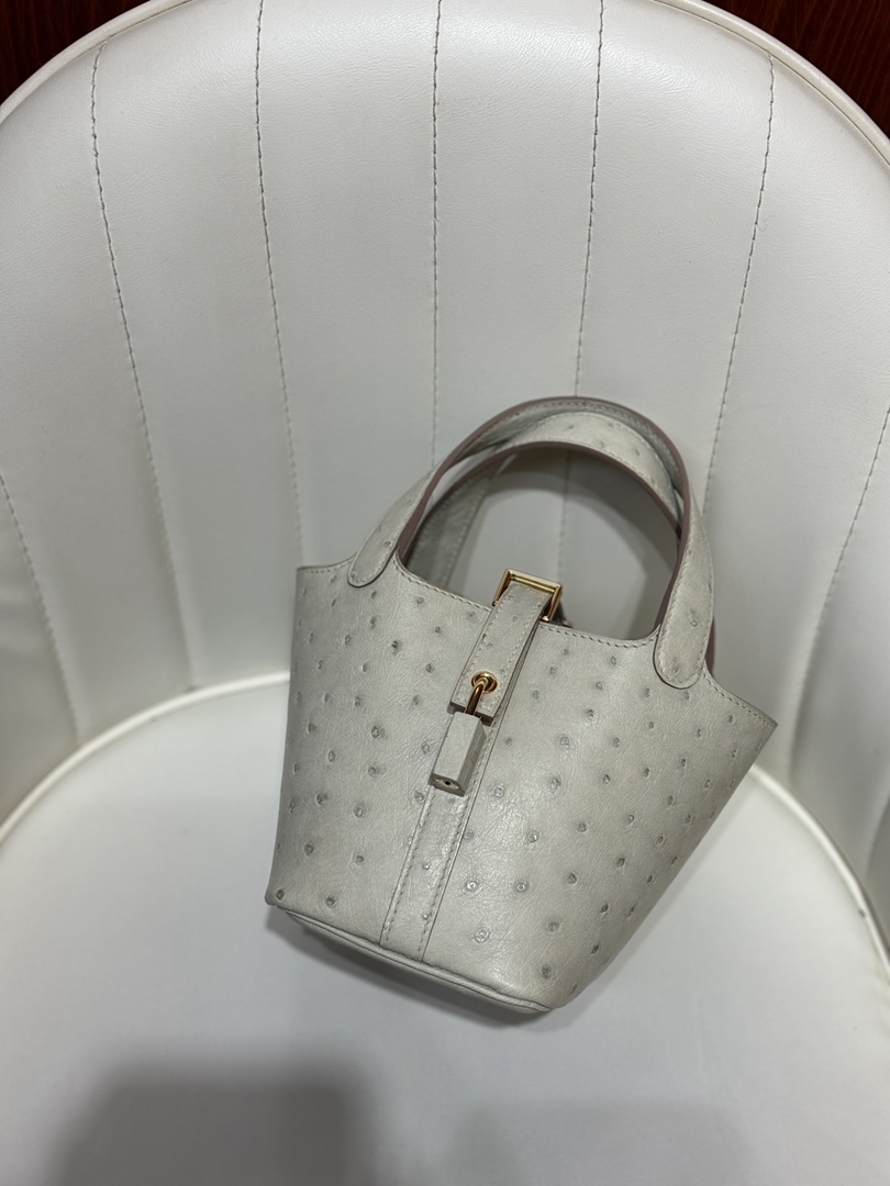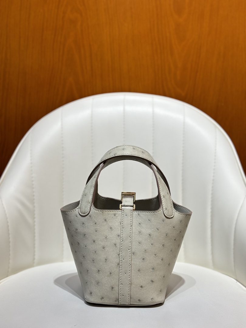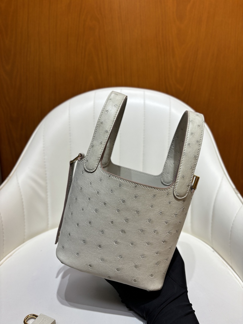 Hermes Ostrich Picotin Lock 22 Gris Neve