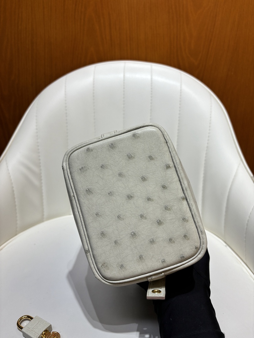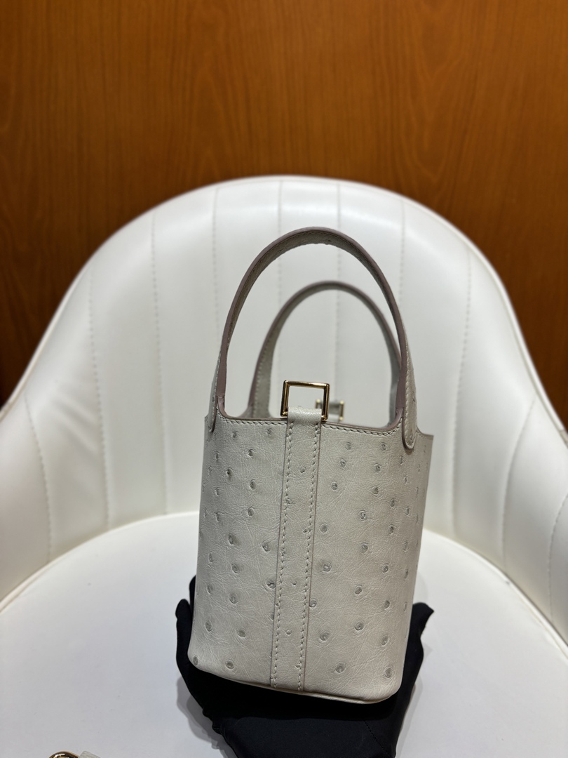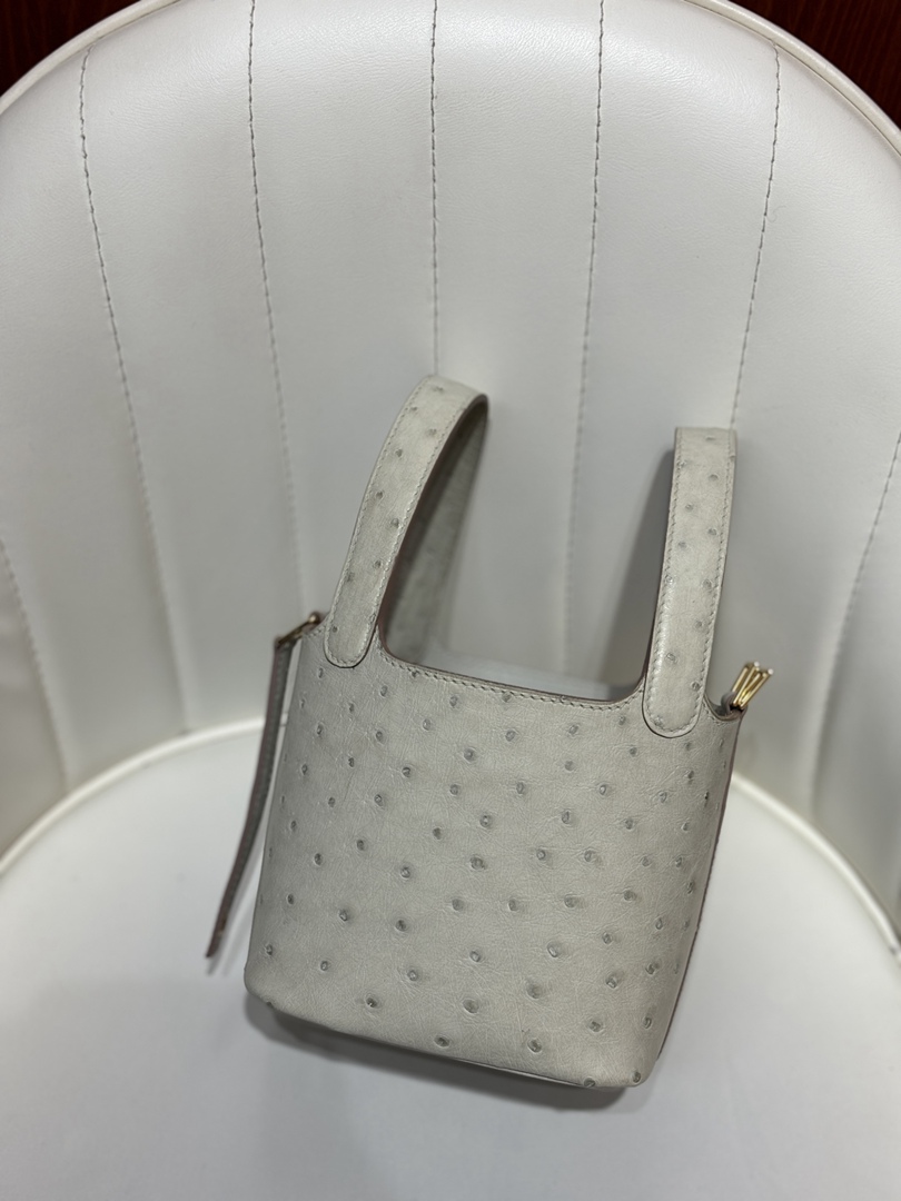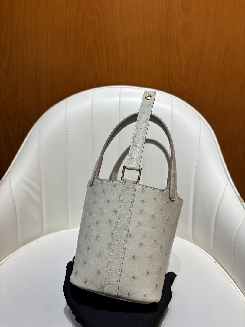 Hermes Ostrich Picotin Lock 22 Gris Neve