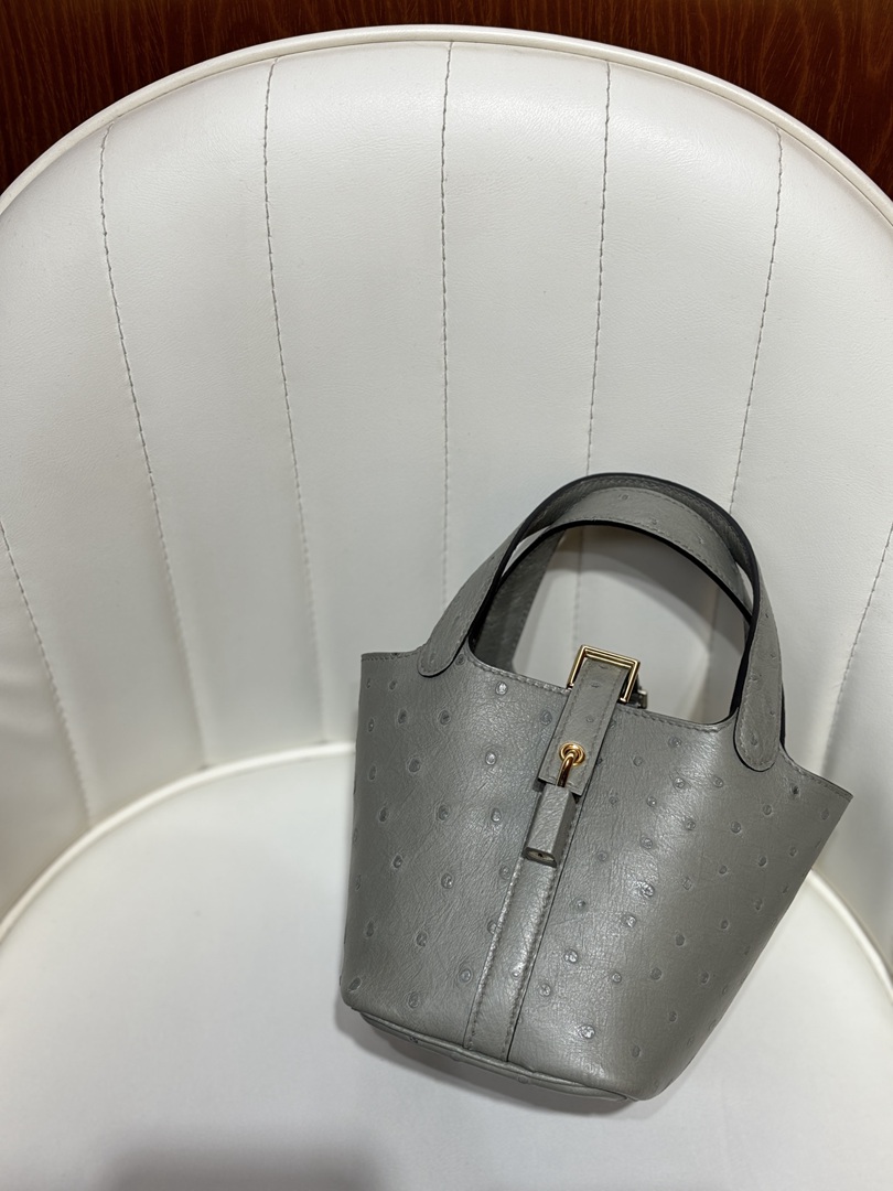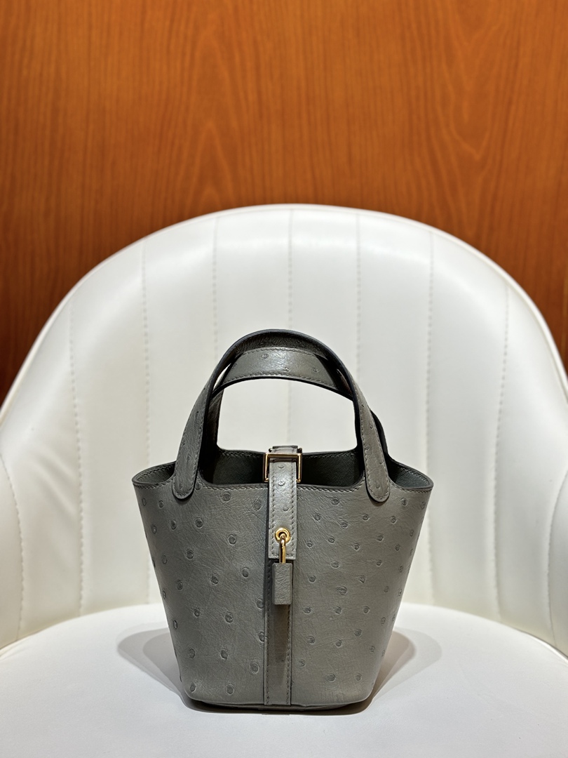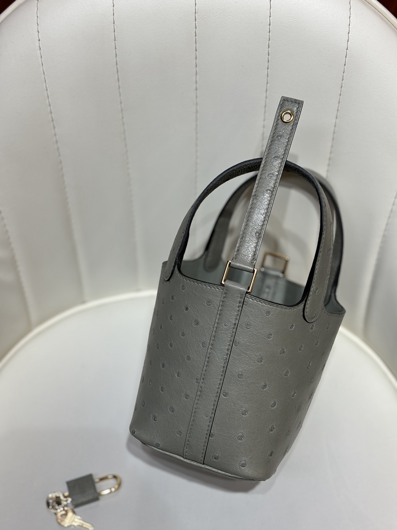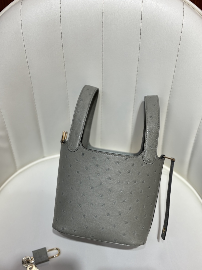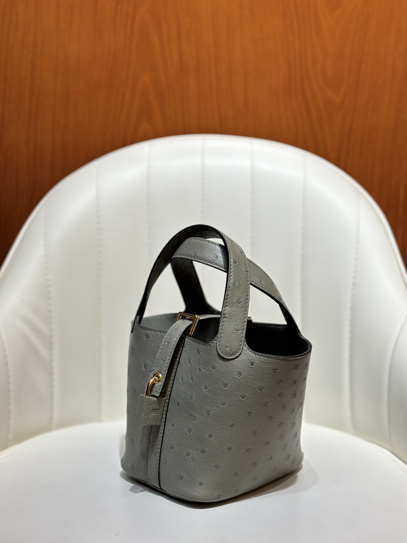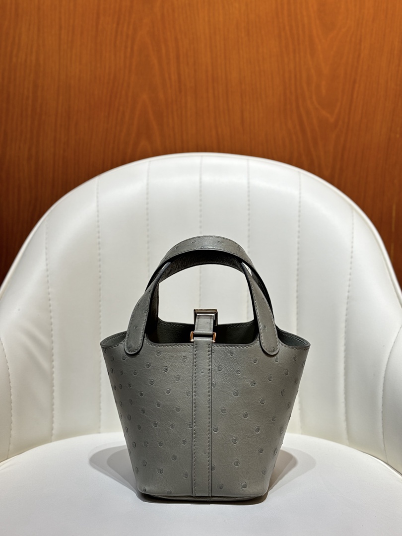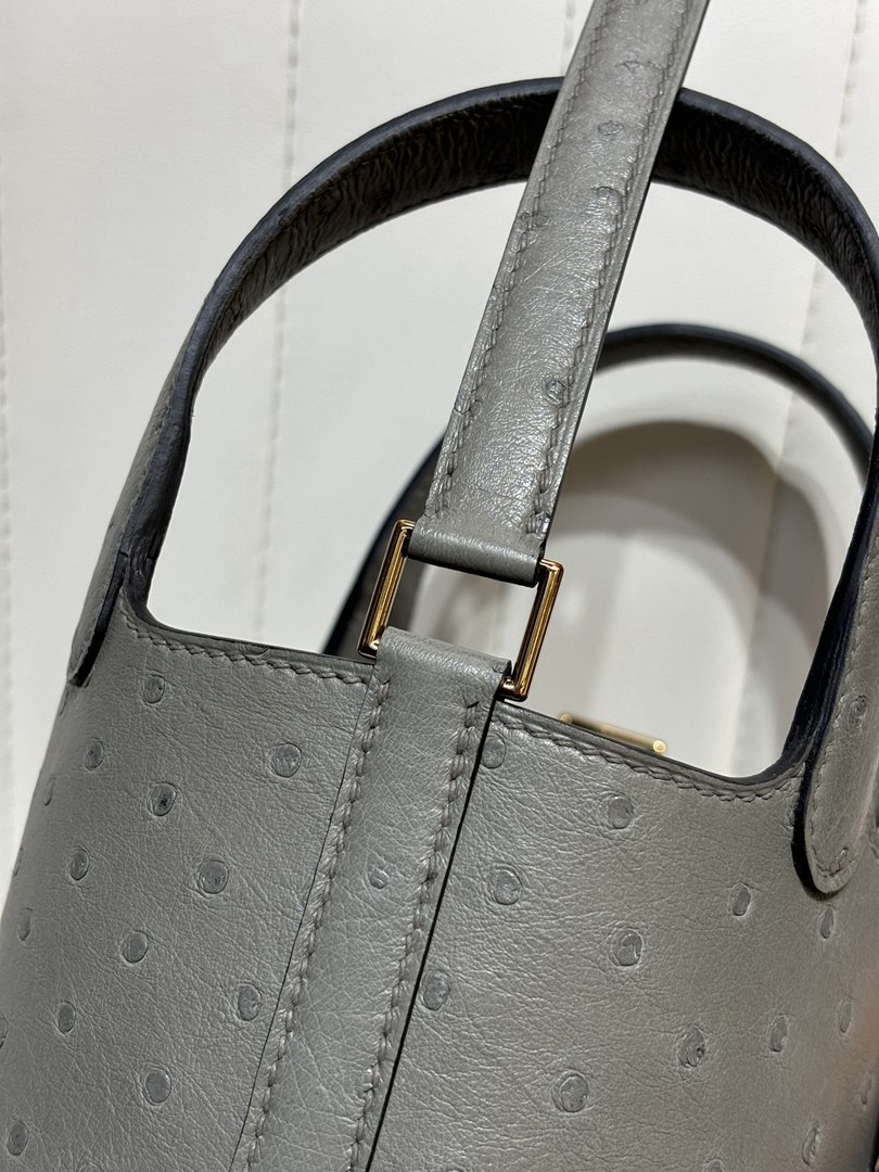 Hermes Ostrich Picotin Lock 22 Gris Mouette