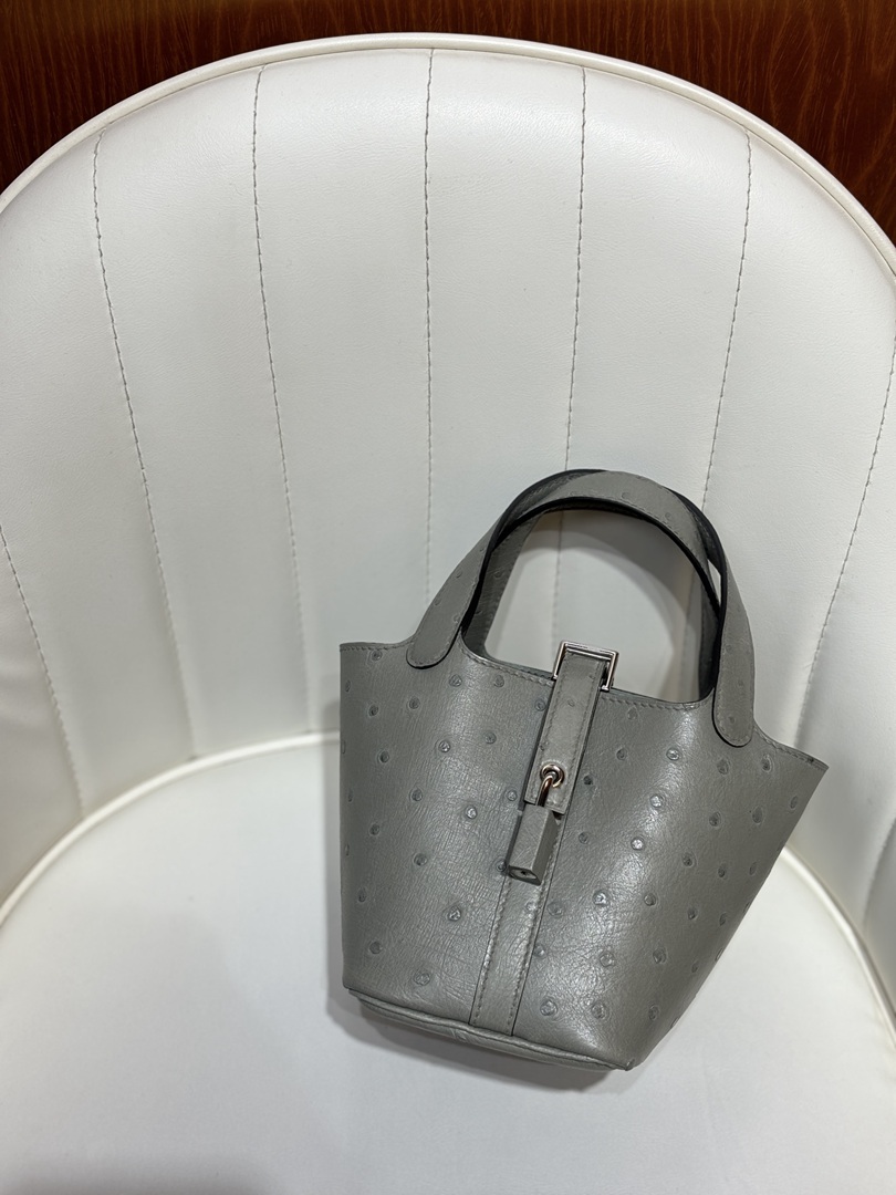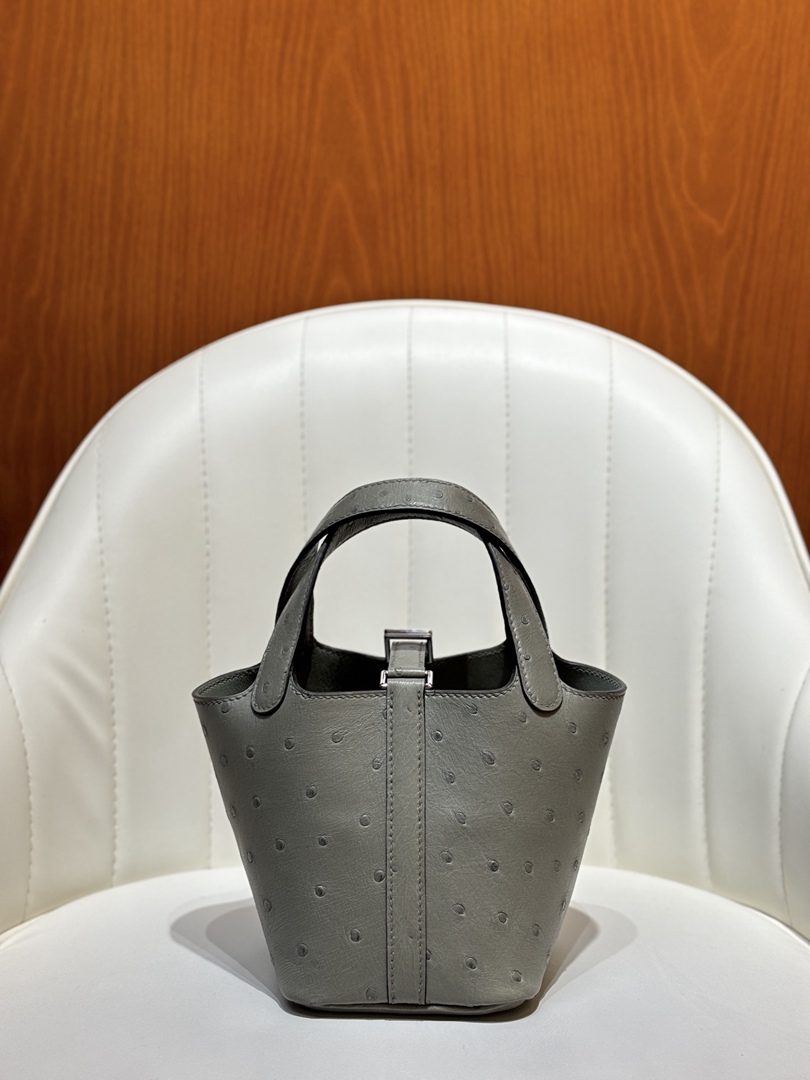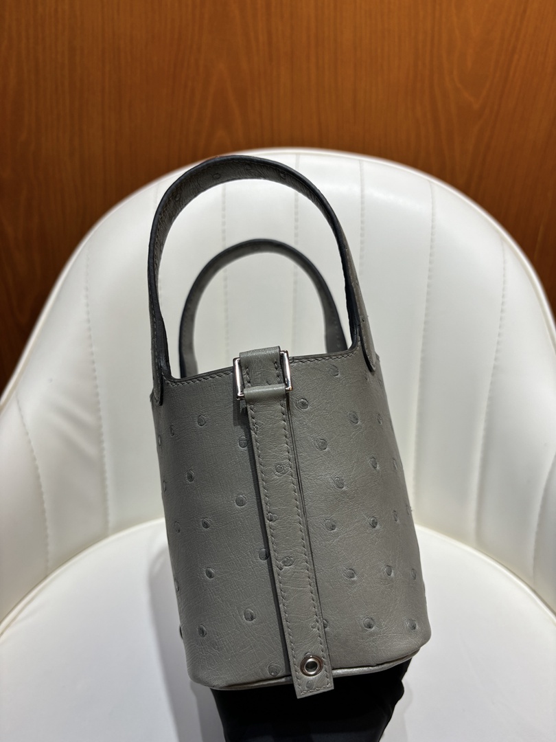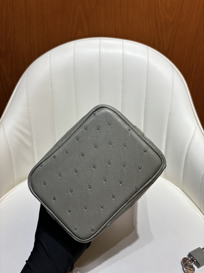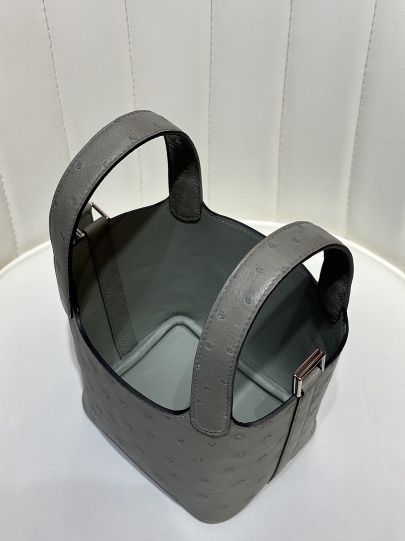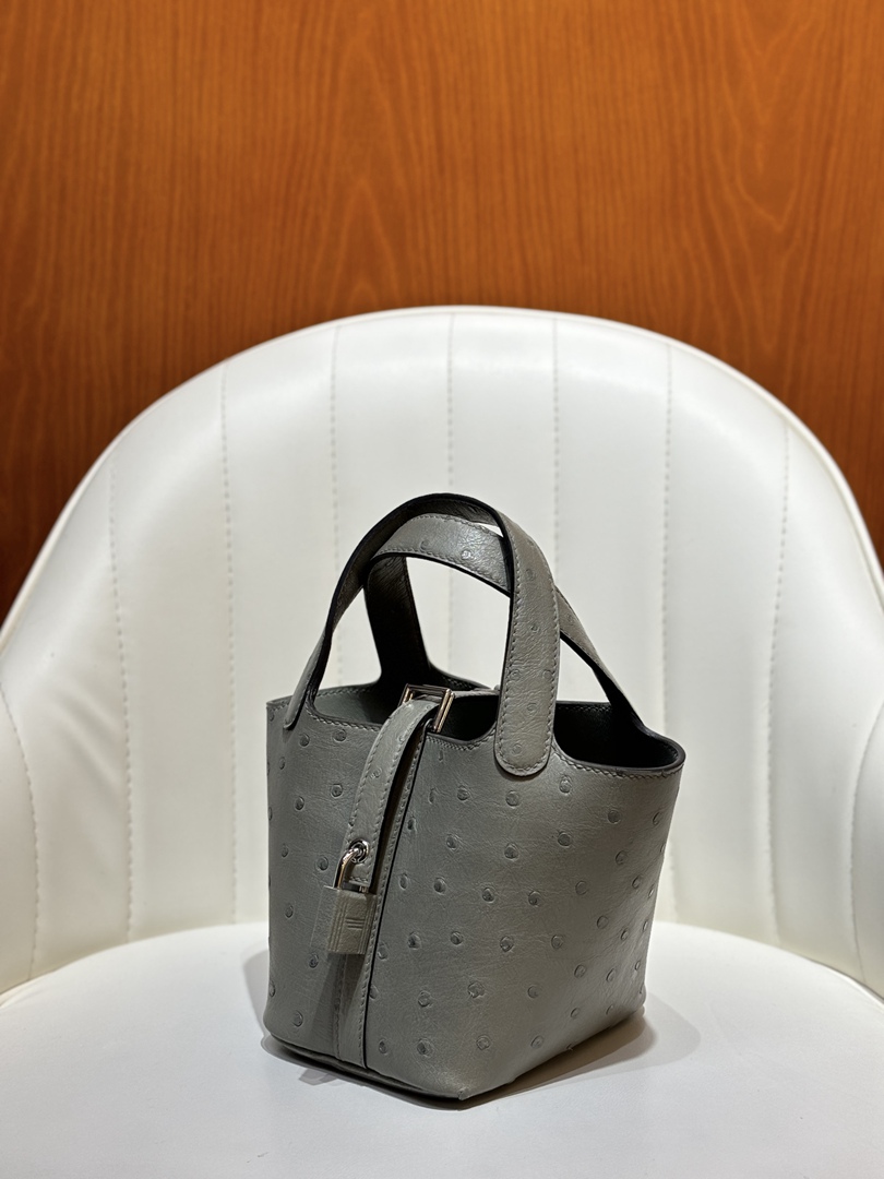 Hermes Ostrich Picotin Lock 22 Gris Mouette