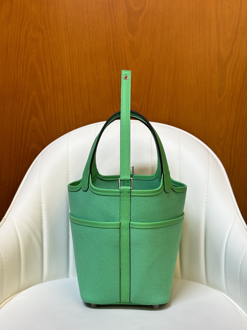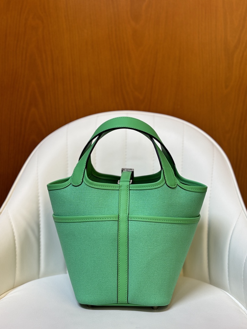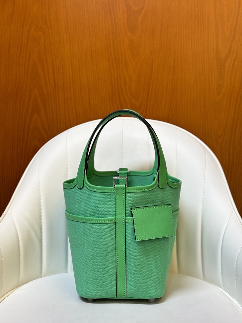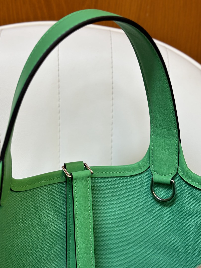 Hermes Cargo Picotin Toile Goeland Swift Picotin Lock 18 Vert Fizz and Vert Comics
