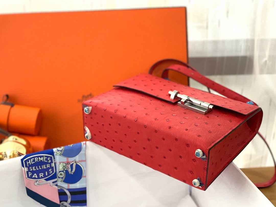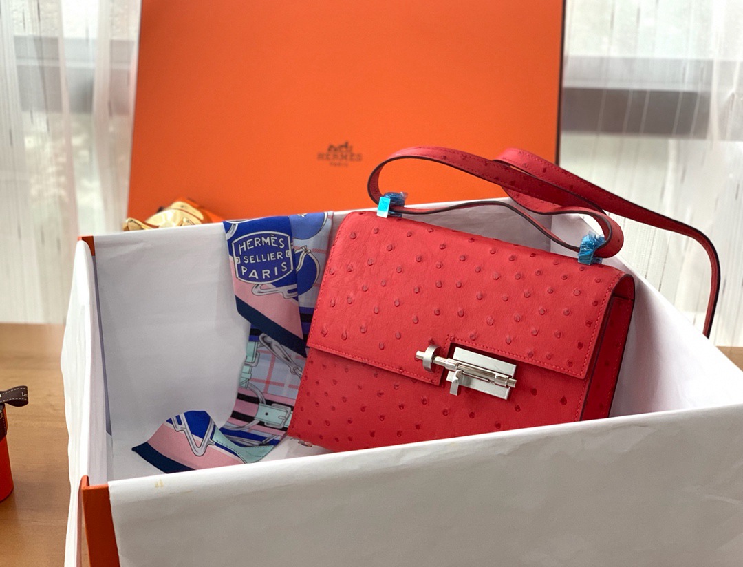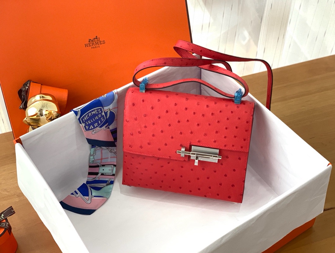 Hermes Ostrich Verrou 21 Rose Azalee