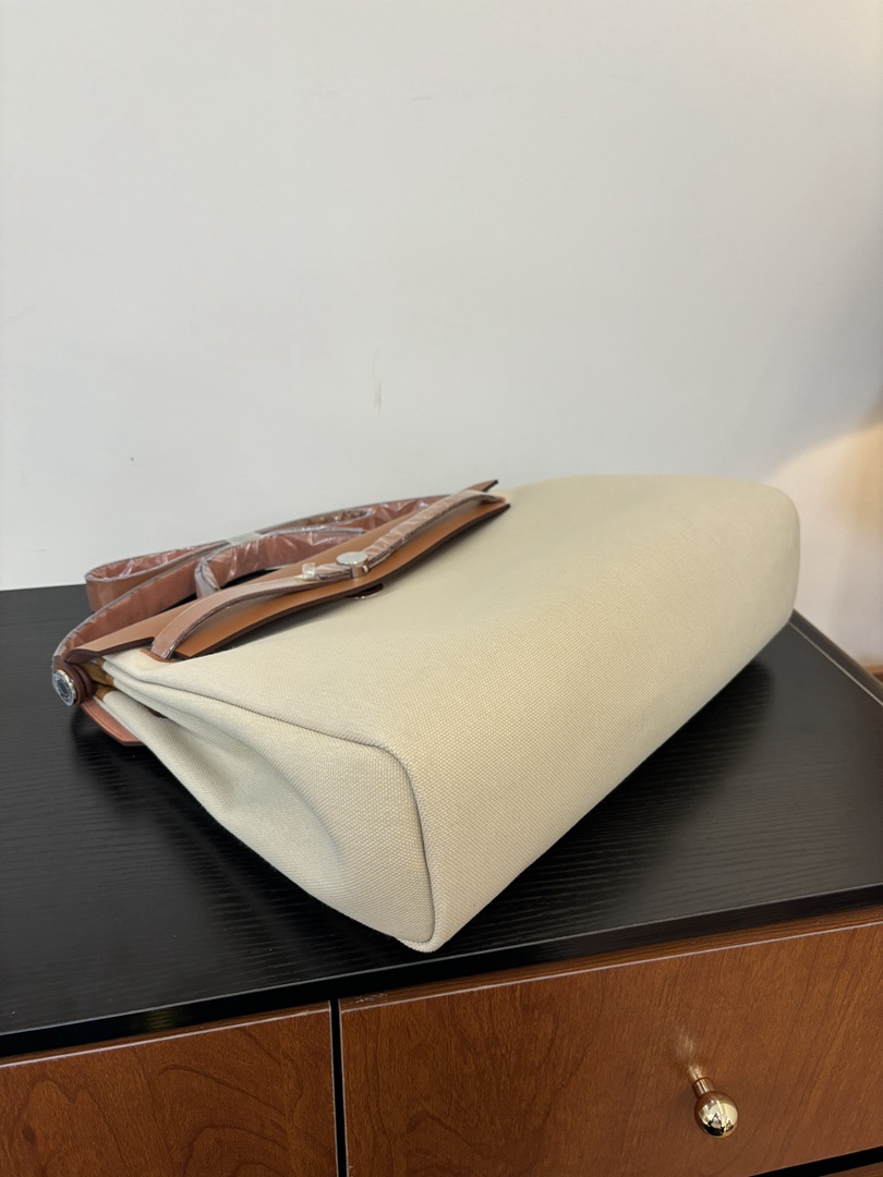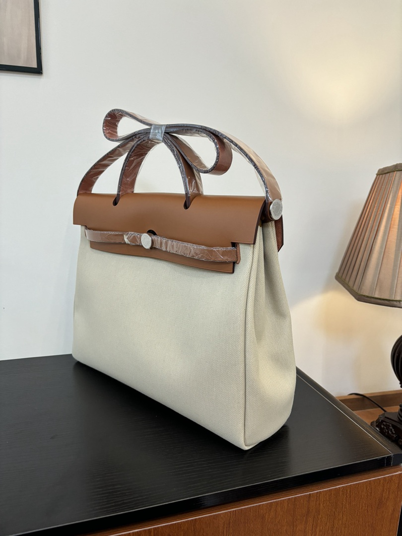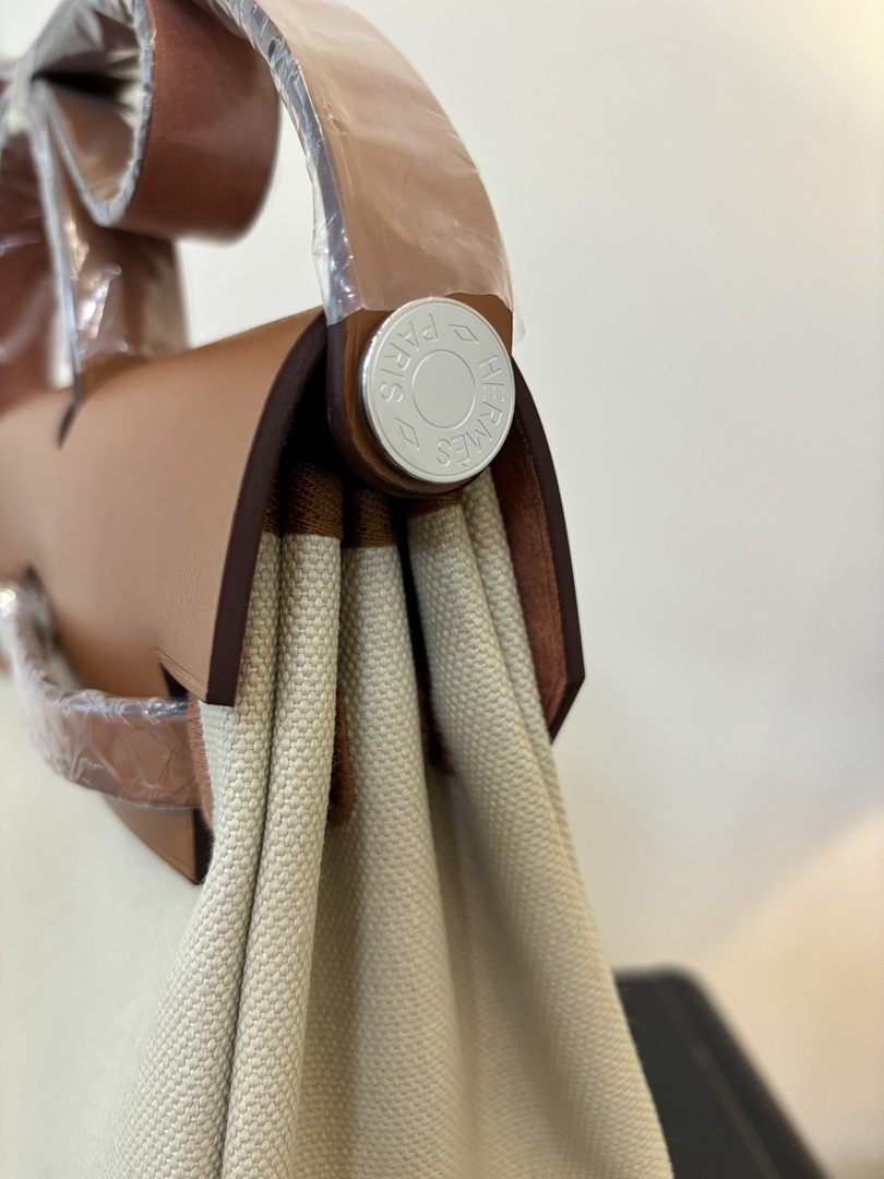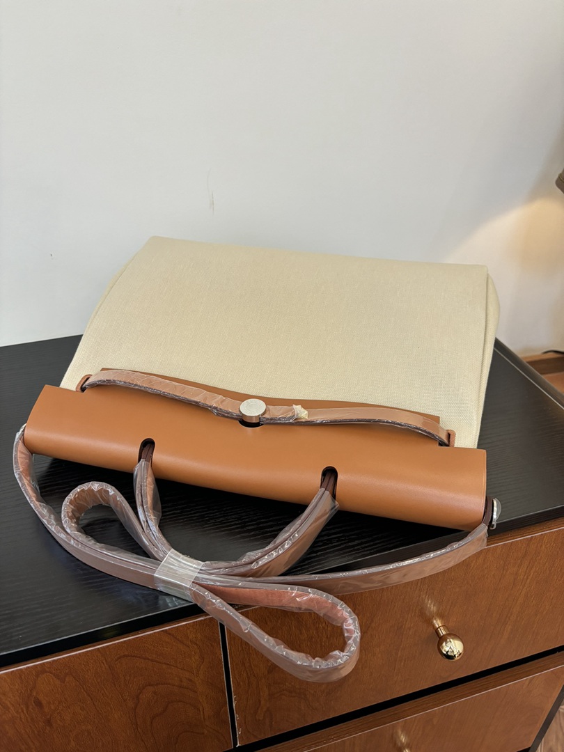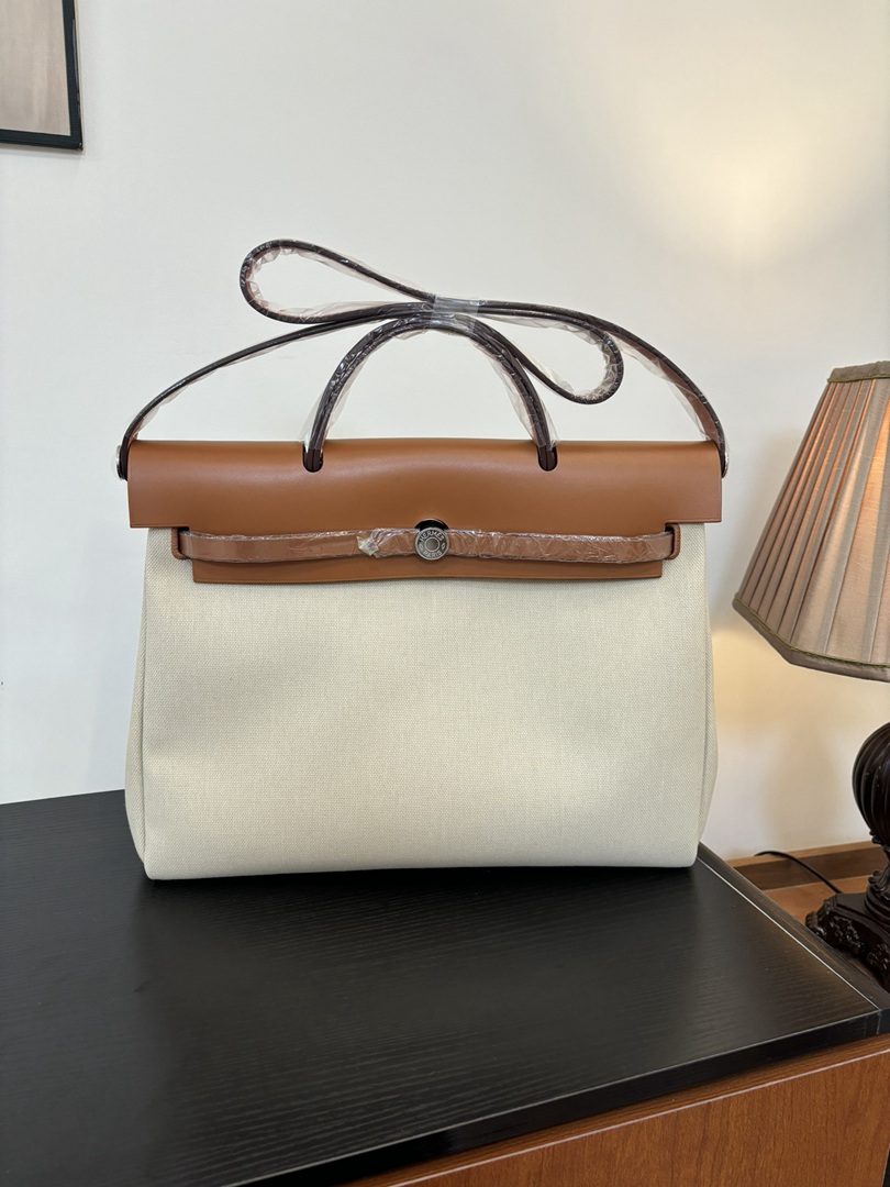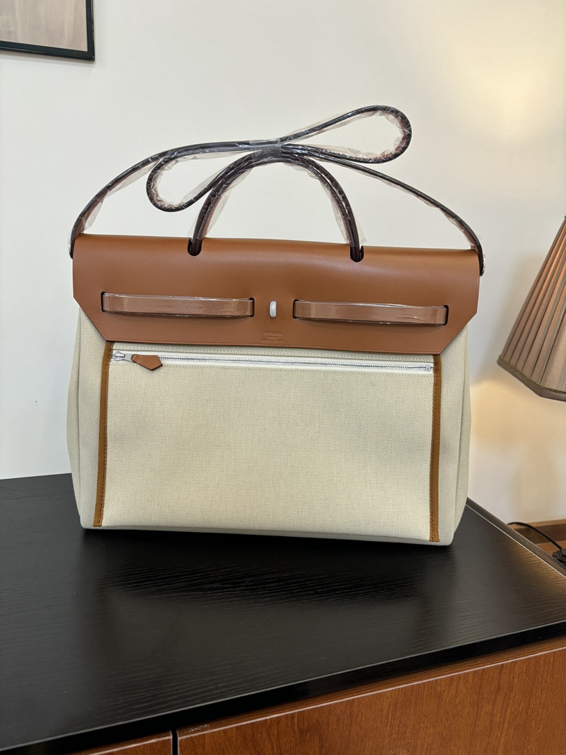 Hermes canvas and leather Herbag Bag Beige and Camel