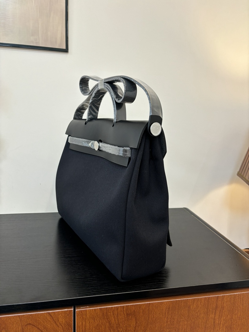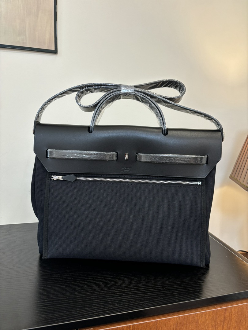 Hermes canvas and leather Herbag Bag Black