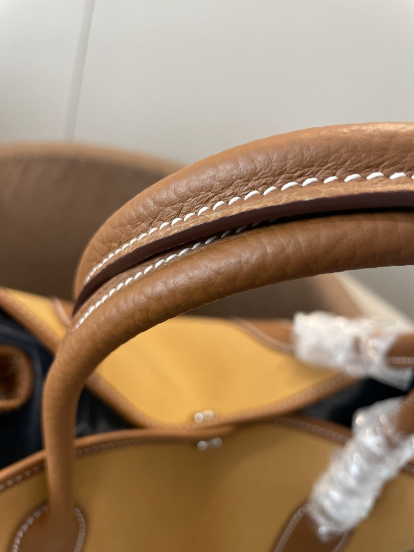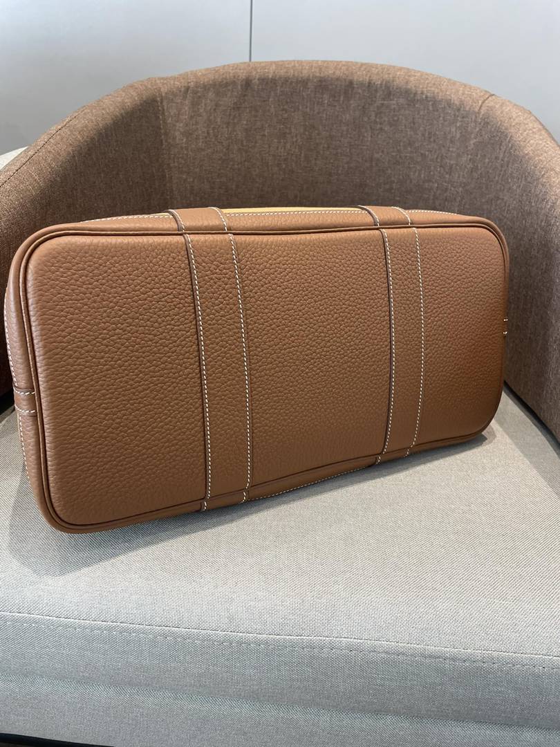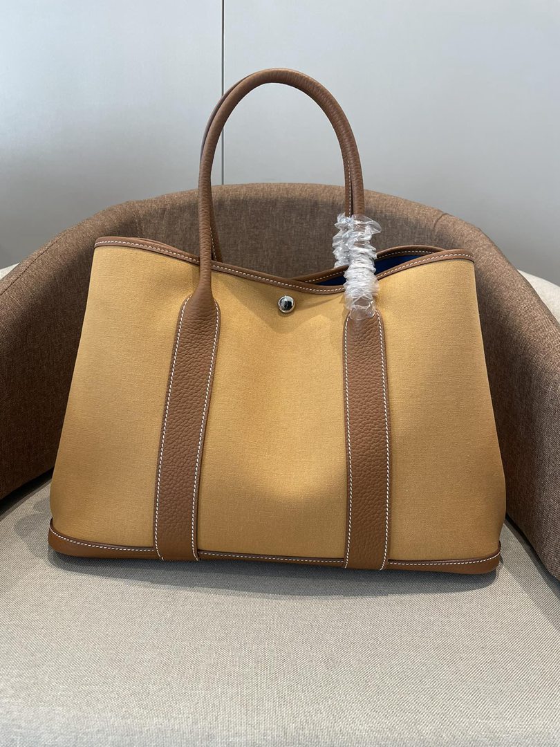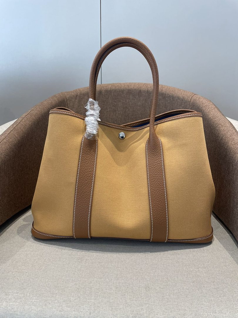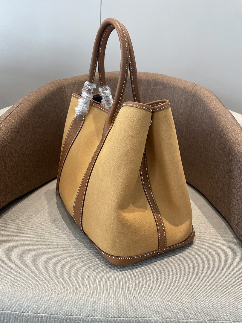 Hermes Garden Party 30 TPM Bicolor Toile Officier Negonda Tote Camel and Brown