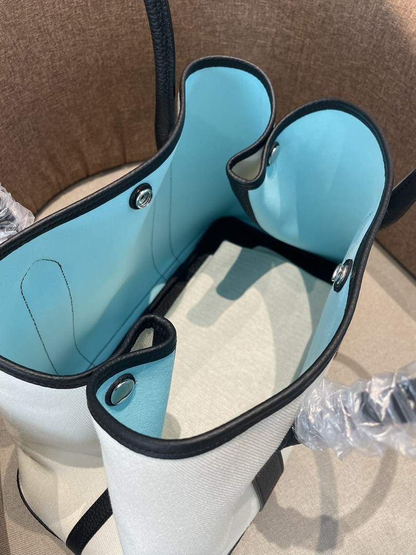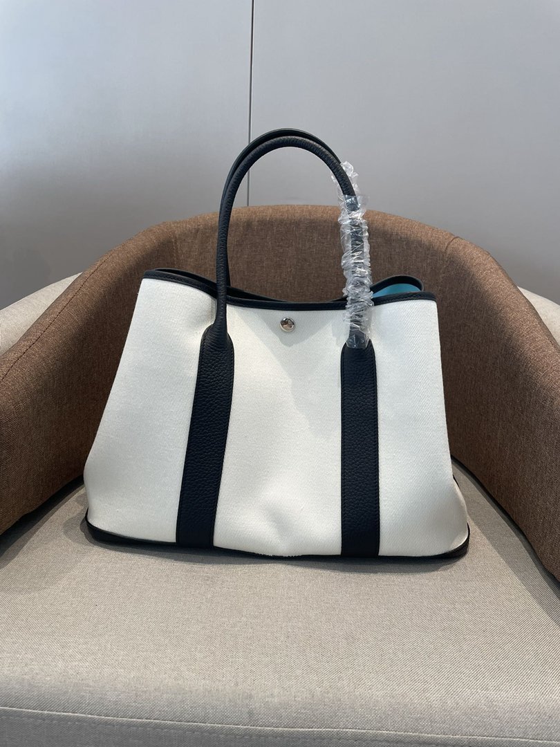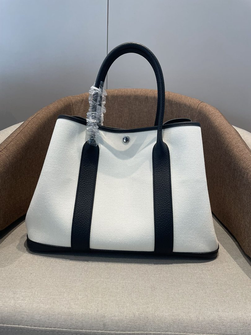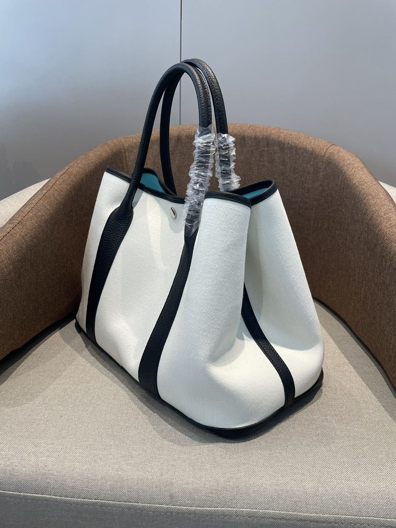 Hermes Garden Party 30 TPM Bicolor Toile Officier Negonda Tote White and Black