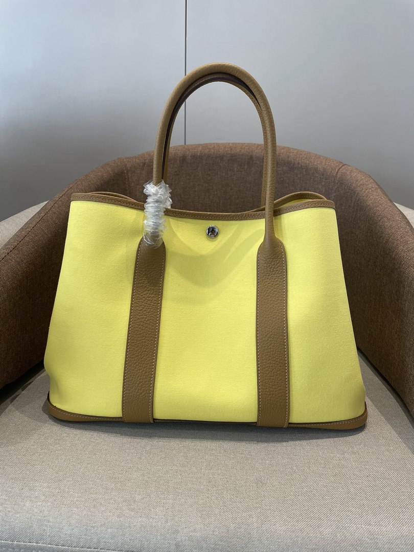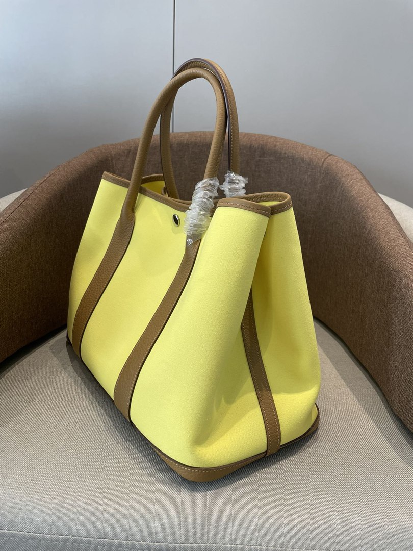 Hermes Garden Party 30 TPM Bicolor Toile Officier Negonda Tote Jaune Citron and Chevre Gold