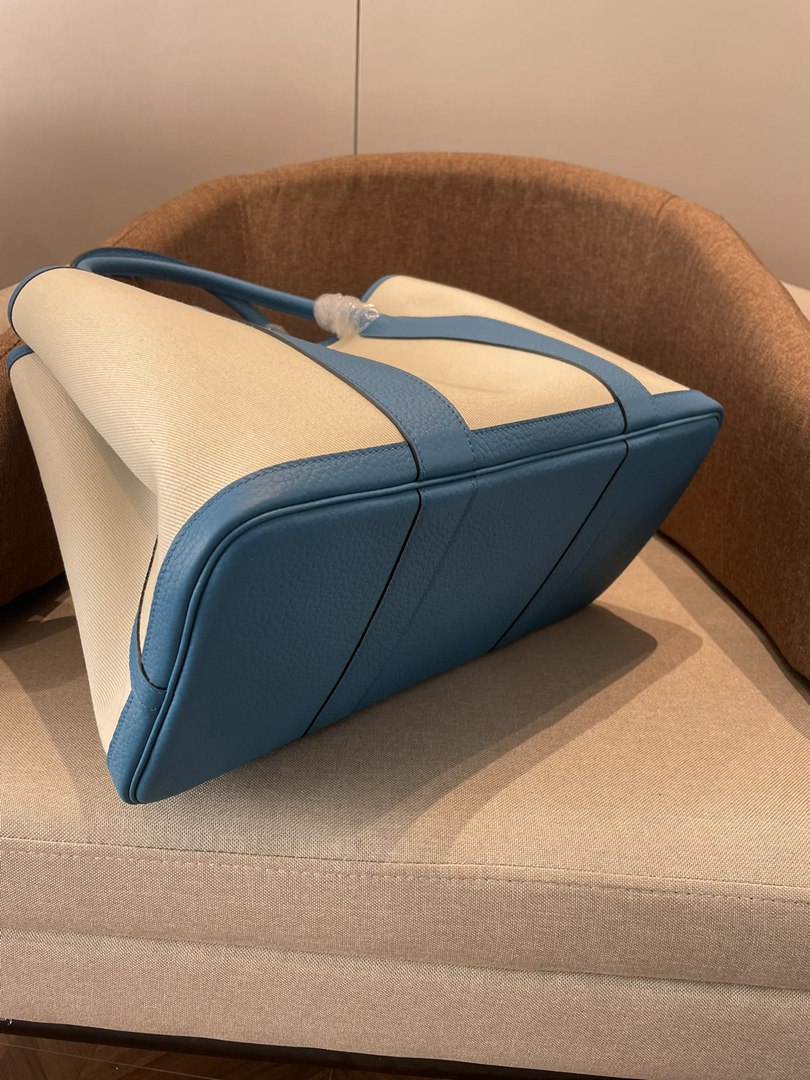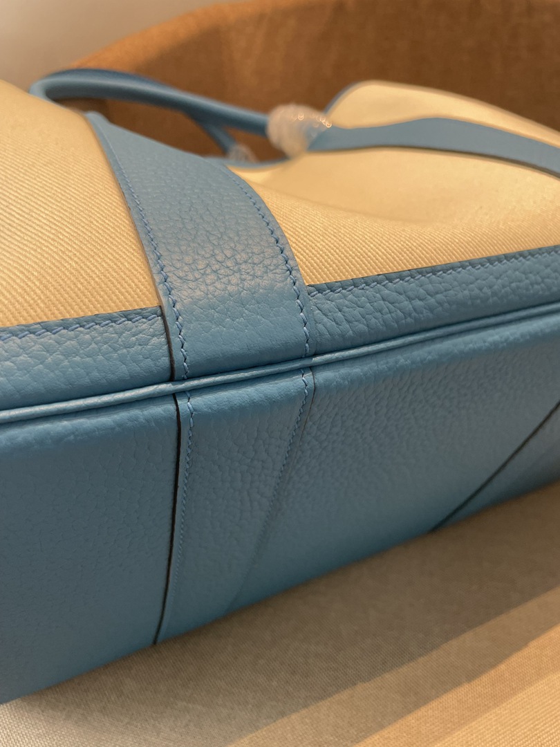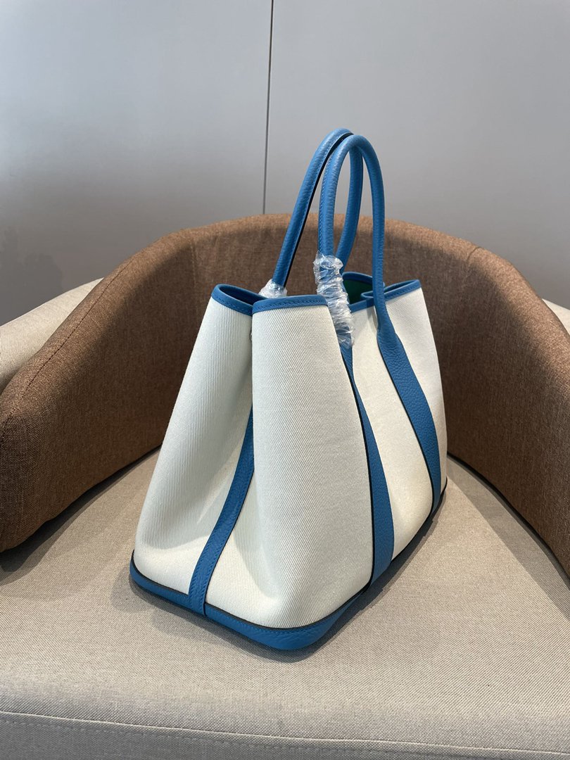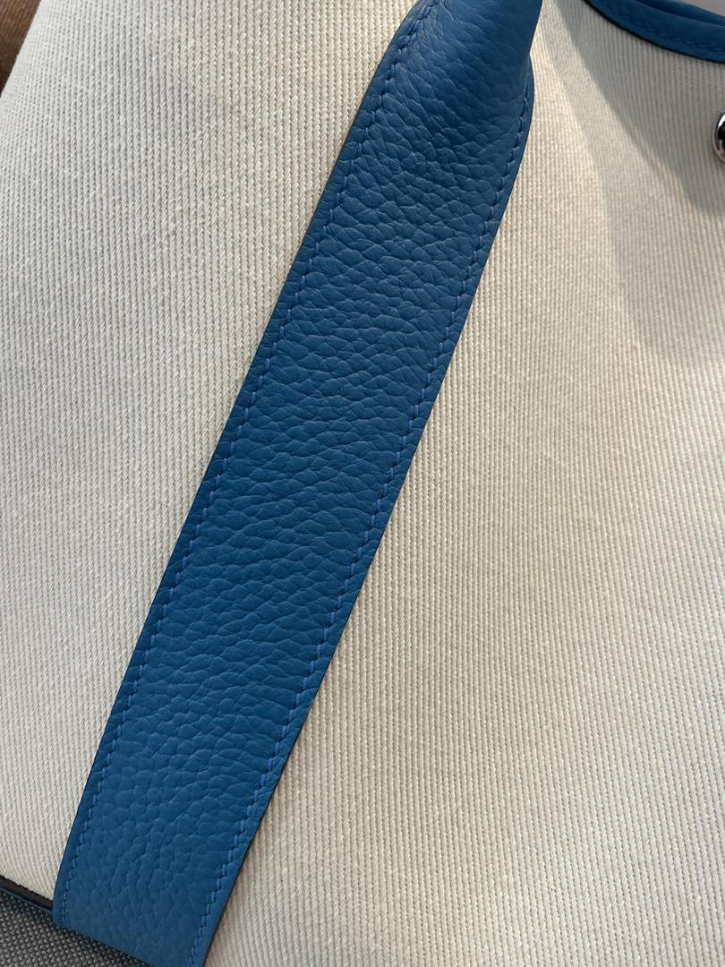 Hermes Garden Party 30 TPM Bicolor Toile Officier Negonda Tote Craie and Bleu Jean