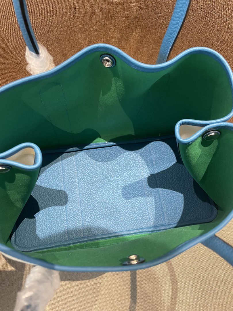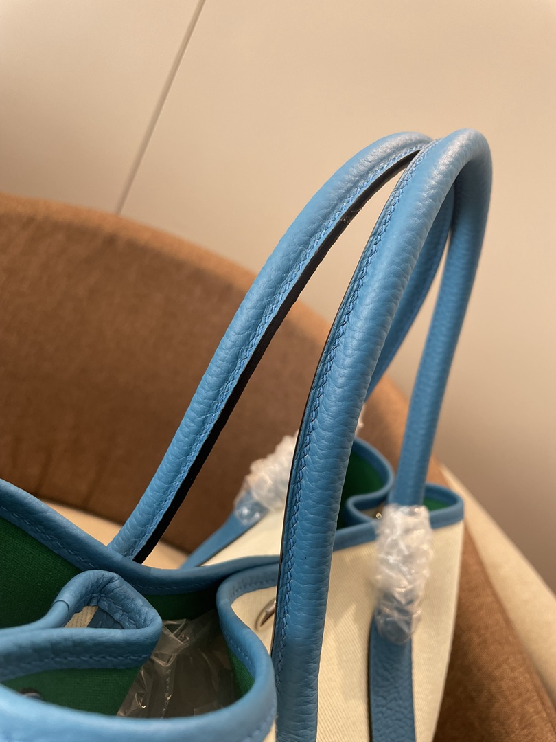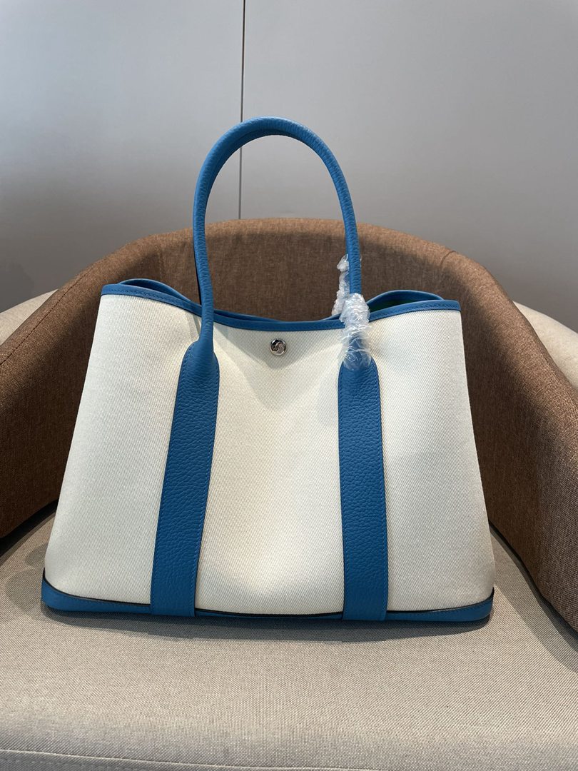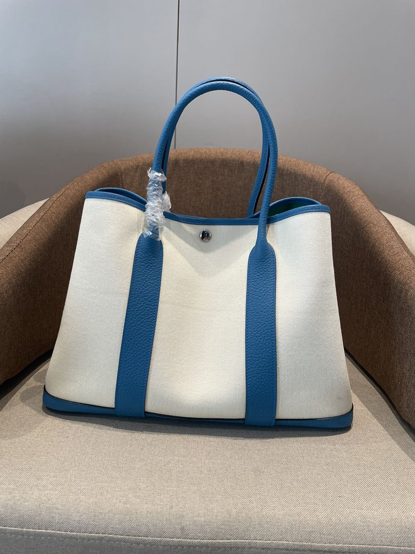 Hermes Garden Party 30 TPM Bicolor Toile Officier Negonda Tote Craie and Bleu Jean
