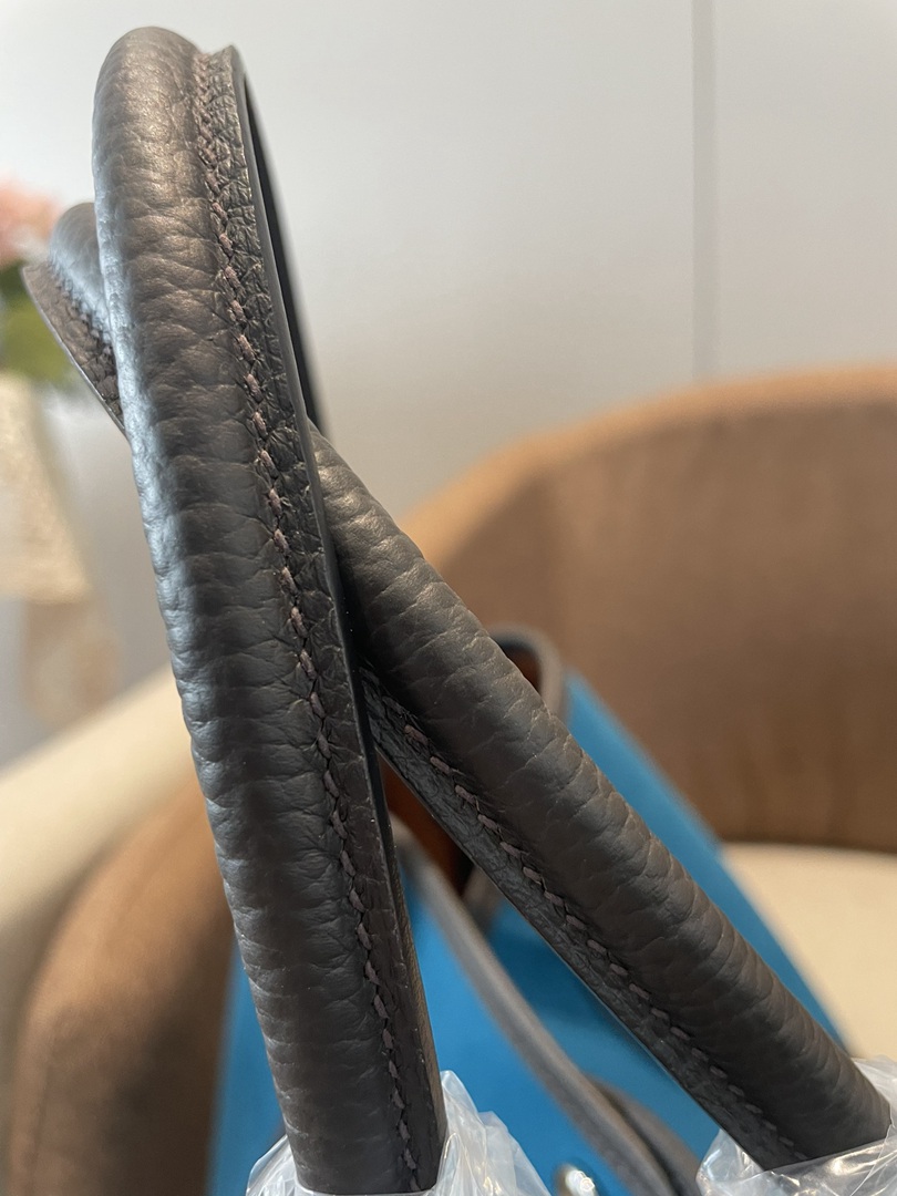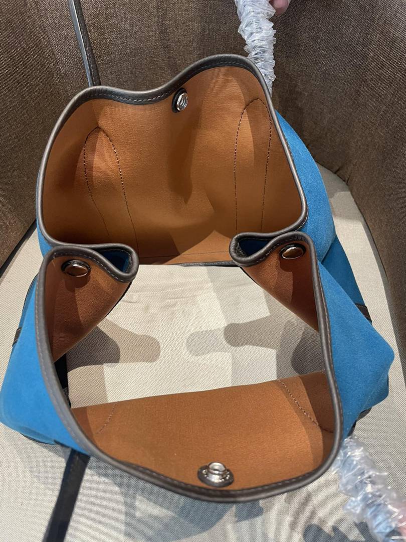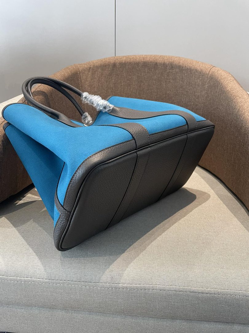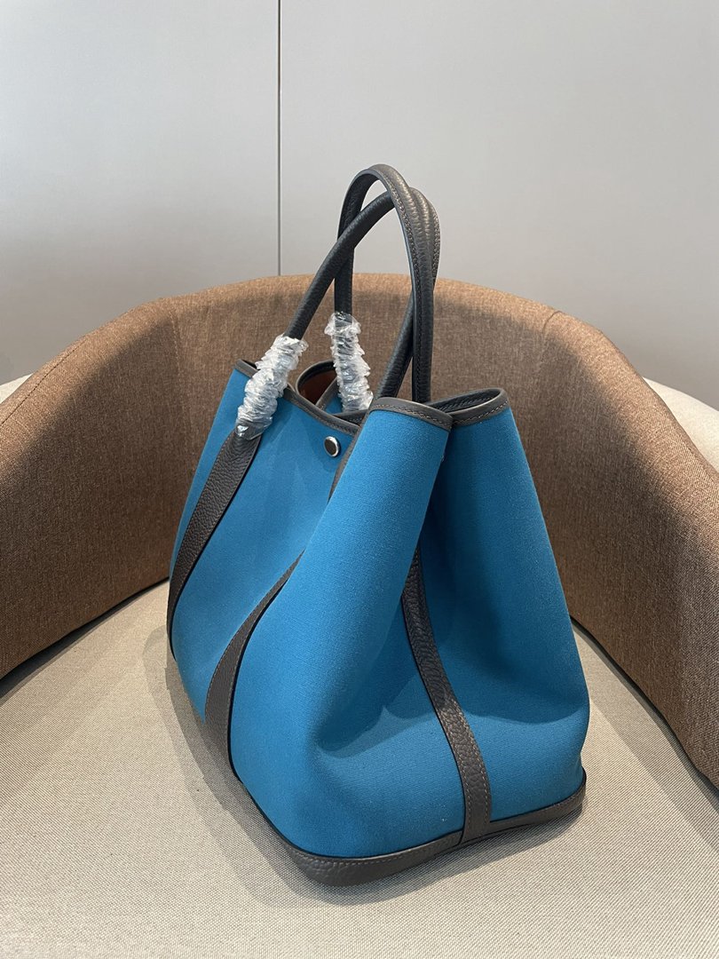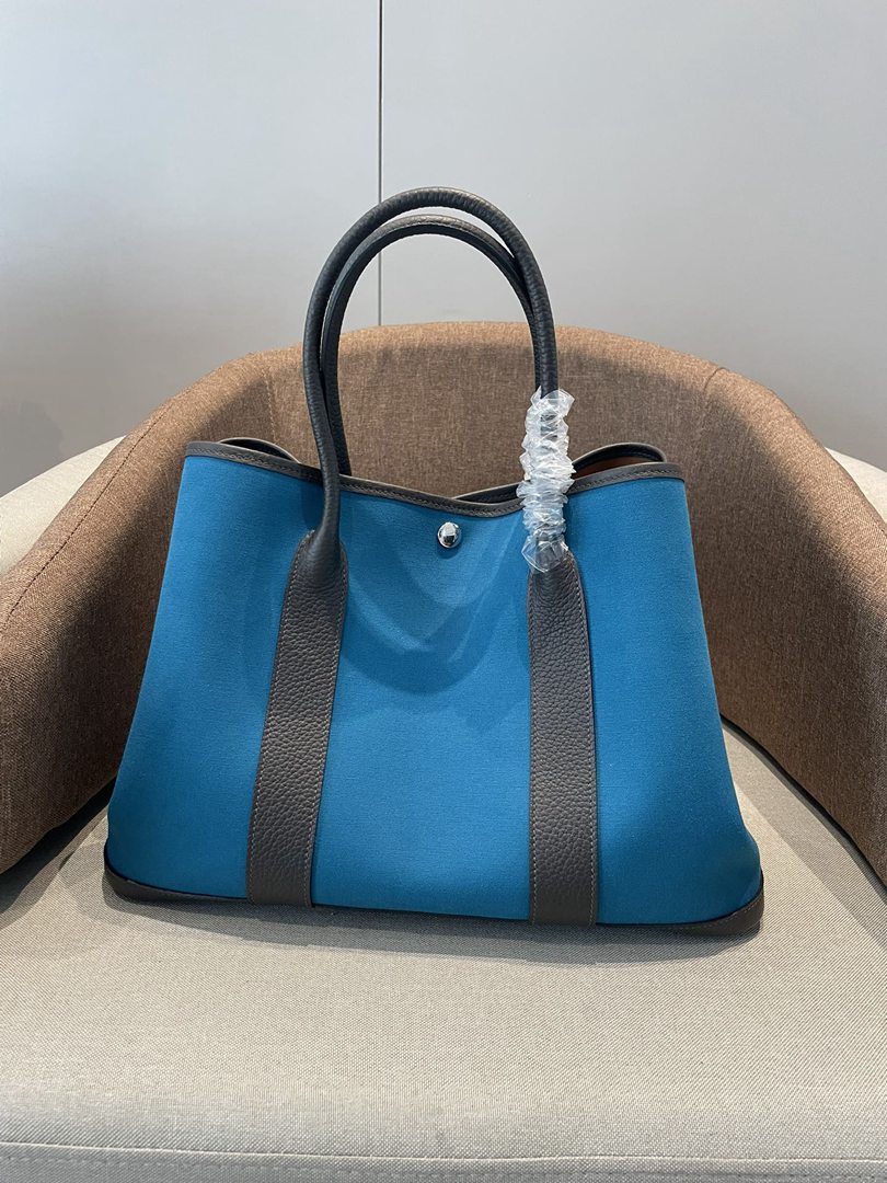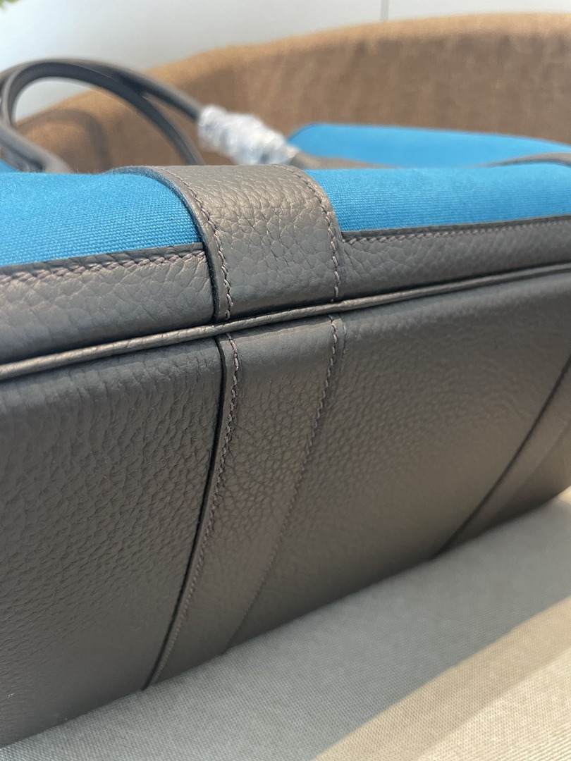 Hermes Garden Party 30 TPM Bicolor Toile Officier Negonda Tote Bleu Jean and Etoupe
