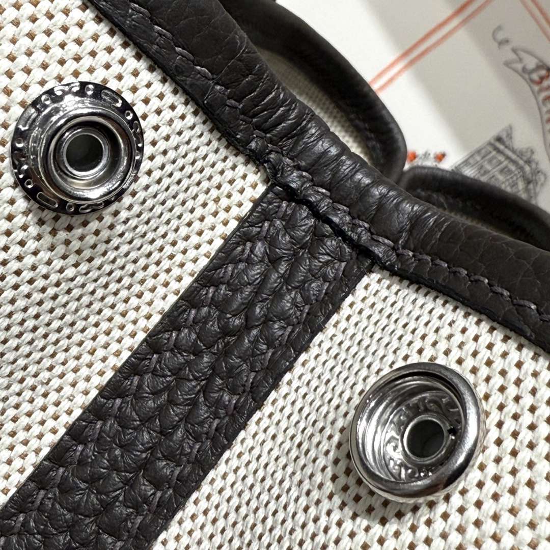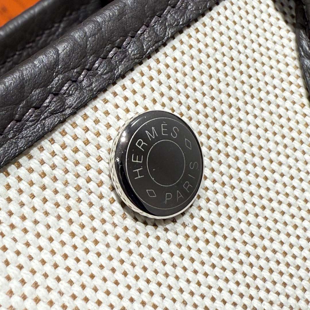Hermes Garden Party MIni Bicolor Toile Officier Negonda Tote Craie and Black