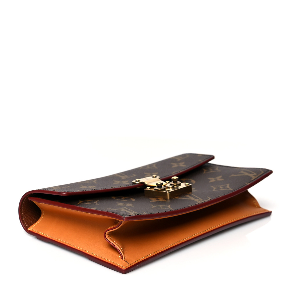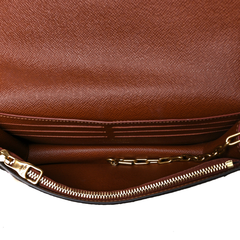 Made from Monogram canvas with natural cowhide-leather trim and the S-lock signature, the Pochette Metis East West bag combines emblematic House cues with new contemporary details like a gold-color chain for fashionable short-shoulder carry. Roomy enough to store an iPhone 13, it has three inside compartments, a zipped pocket inside, and another outside.