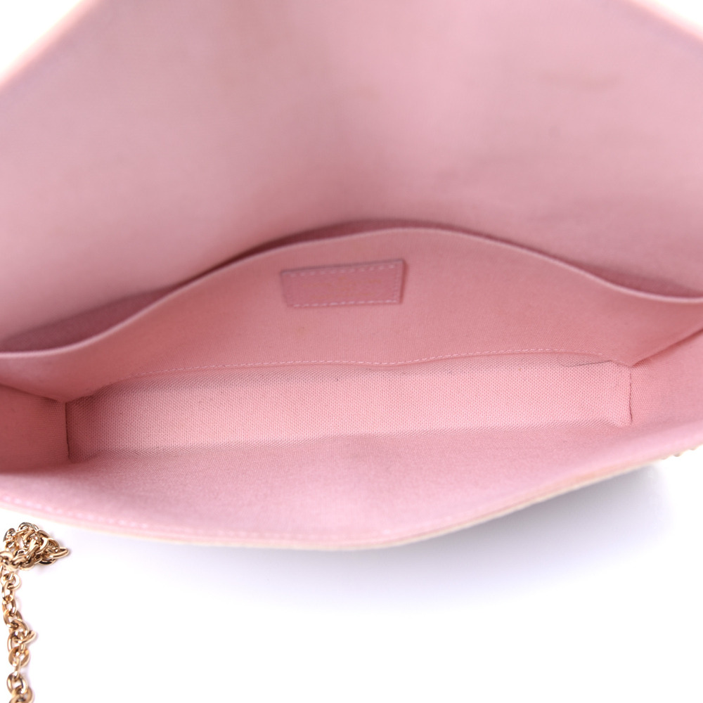 The versatile F??licie Pochette flap pouch is fashioned from Monogram canvas and lined in fuchsia microfiber. Inside there are two removable pockets: a zipped pocket and a flat pocket with eight card slots. The removable gold-color metallic chain enables shoulder and cross-body carry. The F??licie closes with a press-stud.
