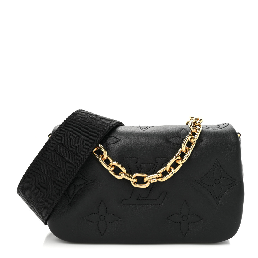 Louis Vuitton Calfskin Bubblegram Wallet On Strap Black small
