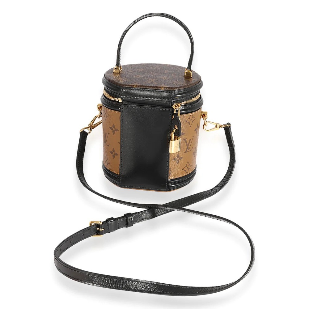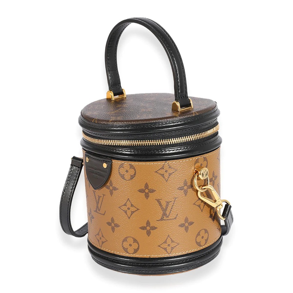 Featuring the historical shape of the LV Cannes beauty case, designer Nicolas Ghesqui??re revives a long-standing classic with the Cannes handbag. Petite in size and presented in a mix of Monogram and Monogram reverse coated canvas, the elegant piece reanimates a traditional silhouette steeped in Louis Vuitton heritage. A removable leather strap and top handle provide a range of carrying options.