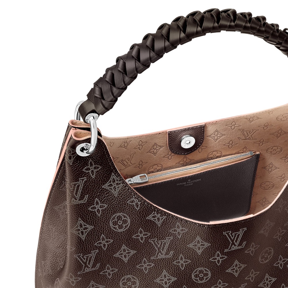 For Fall 2020, the contrasted perforation is offered on the Carmel hobo bag in a sophisticated chocolate color, enhanced by a luminous contrasted cachemire tone. This lightweight yet roomy bag features a braided-leather handle for comfortable shoulder or elbow carry.