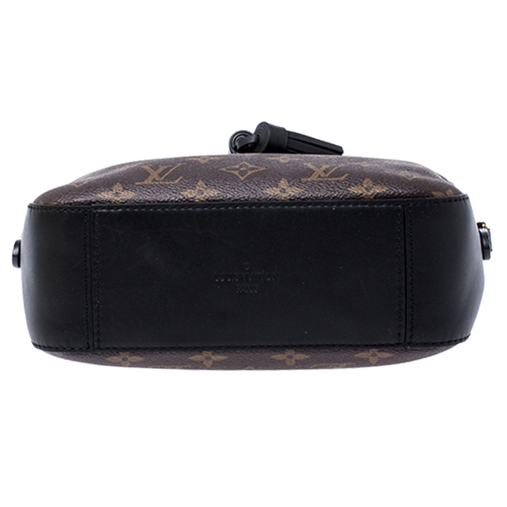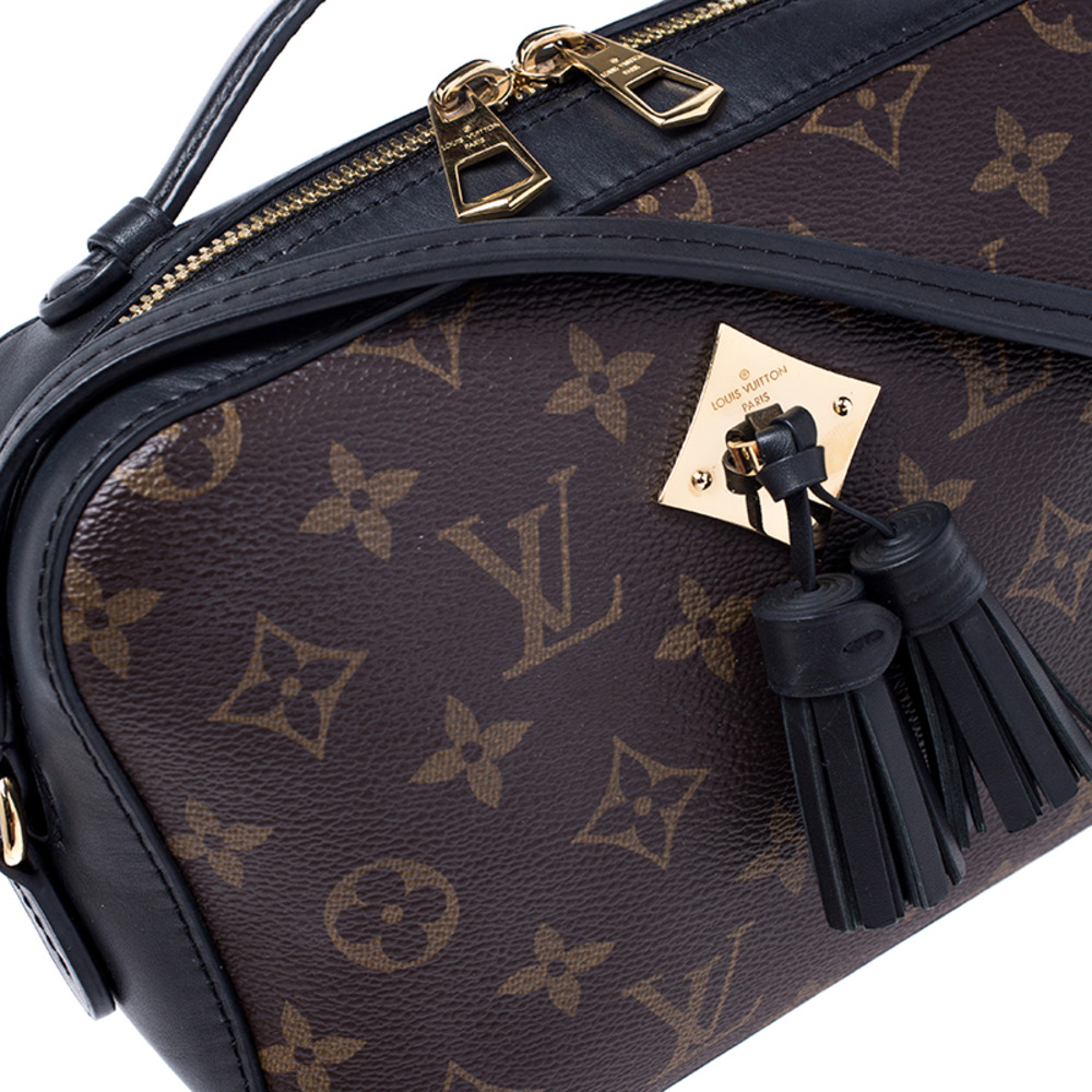 This petite shoulder bag is crafted of signature Louis Vuitton empreinte leather in black. It features a facing polished brass plate, adorned with two leather tassels. The bag has a sturdy leather top handle, and an adjustable shoulder strap with polished brass hardware. The wrap-around zippers opens to a black fabric interior with a patch pocket. This is a stunning handbag, suitable for day or evening wear, with the luxury and style of Louis Vuitton!