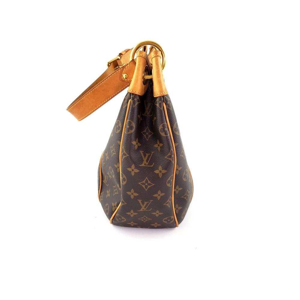 Fashioned from Monogram canvas with leather trim, theclassic House details like a gold-color padlock and rolled-leather top handles. It can be carried by hand or worn on the shoulder or cross-body thanks to its detachable strap.